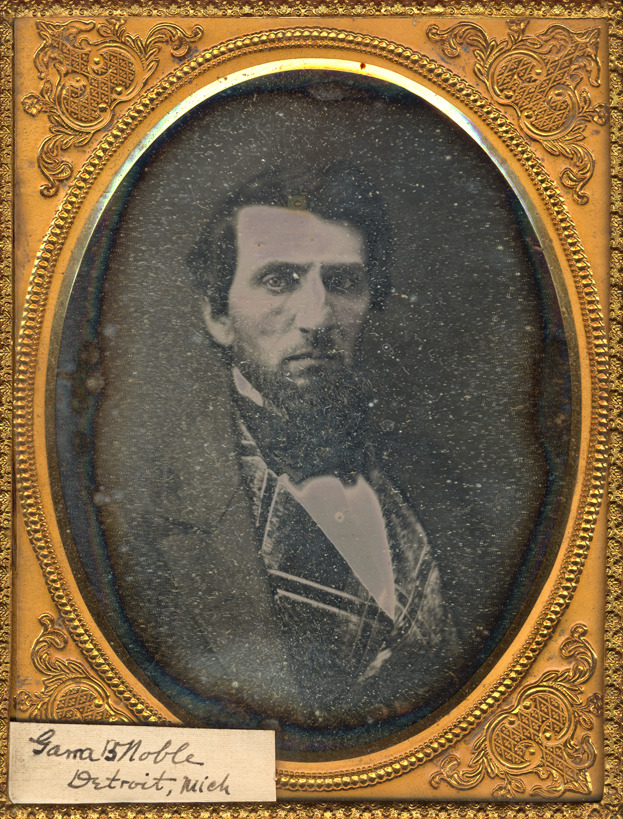 Favorite this☆ Portrait of Garra B. Noble Description: Cased image of Garra B. Noble, Detroit. Case front missing. Details Resource ID: CSI110 Subject: Portrait photography--Michigan--Detroit Men--Portraits Daguerreotypes Date Issued: Unknown year Format: 1 photograph ; half plate daguerreotype Member of: Burton Historical Collection Filing Location: Daguerreotypes, Ambrotypes, Tintypes Rights: Physical rights are retained by DPL. Copyright is retained in accordance with U.S. copyright laws.