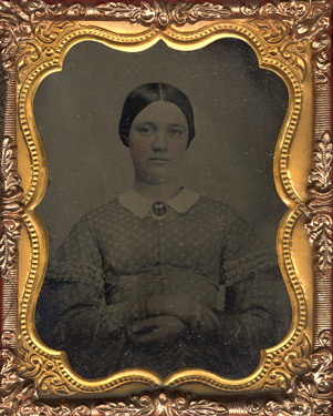 Cased image of a woman, Pettee family. Case front is missing.