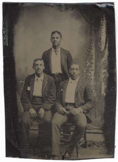 Favorite this☆ Portrait of Benjamin DeBaptiste Description: Group portrait of Benjamin DeBaptiste, cousin of abolitionist George DeBaptiste, and two unidentified men. Details Resource ID: CSI213 Subject: Portrait photography African American men--Portraits Tintypes Date Issued: Unknown year Format: 1 photograph ; sixteenth plate tintype Member of: Burton Historical Collection Rights: Physical rights are retained by DPL. Copyright is retained in accordance with U.S. copyright laws.