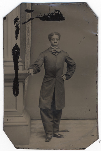 Favorite this☆ Portrait of Benjamin DeBaptiste Description: Full-length portrait of Benjamin DeBaptiste as young man, wearing knee-length coat, standing by column. Benjamin is the cousin of abolitionist George DeBaptiste. Details Resource ID: CSI214 Subject: Portrait photography African American men--Portraits Tintypes Date Issued: Unknown year Format: 1 photograph ; sixteenth plate tintype Member of: Burton Historical Collection Rights: Physical rights are retained by DPL. Copyright is retained in accordance with U.S. copyright laws.