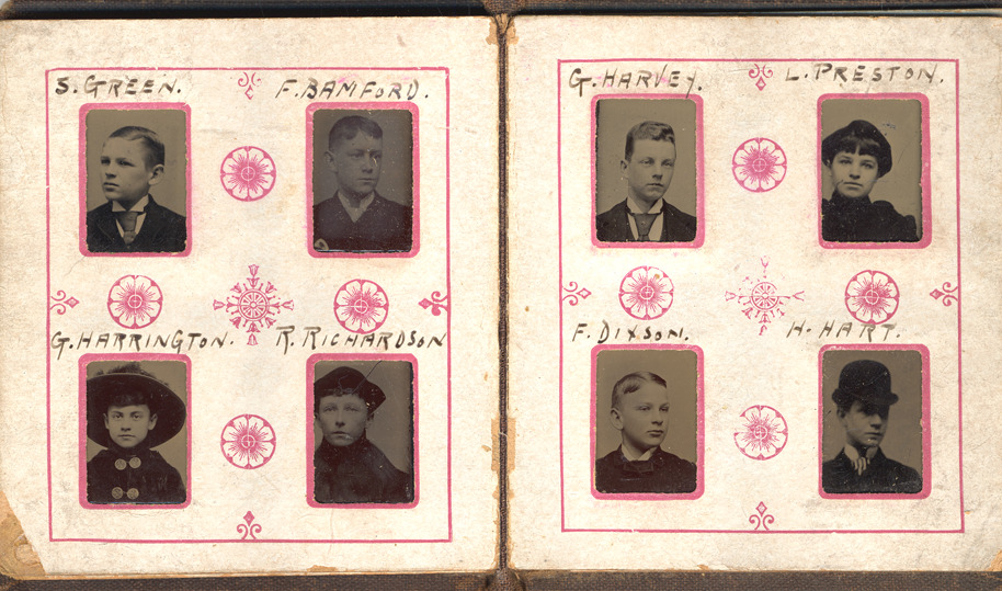 Favorite this☆ Students at Irving School Description: Individual portraits of students at Irving School. Handwritten on front: "S. Green, F. Bamford, G. Harrington, R. Richardson, G. Harvey, L. Preston, F. Dixson, H. Hart." Details Resource ID: CSI245 Subject: Students--Portraits Girls--Portraits Boys--Portraits Tintypes Date Issued: 1888 (year approximate) Format: 1 photographic print ; 4 x 6 in. Member of: Burton Historical Collection Note (Content): From portrait album of 48 students at Irving School. Rights: Physical rights are retained by DPL. Copyright is retained in accordance with U.S. copyright laws.