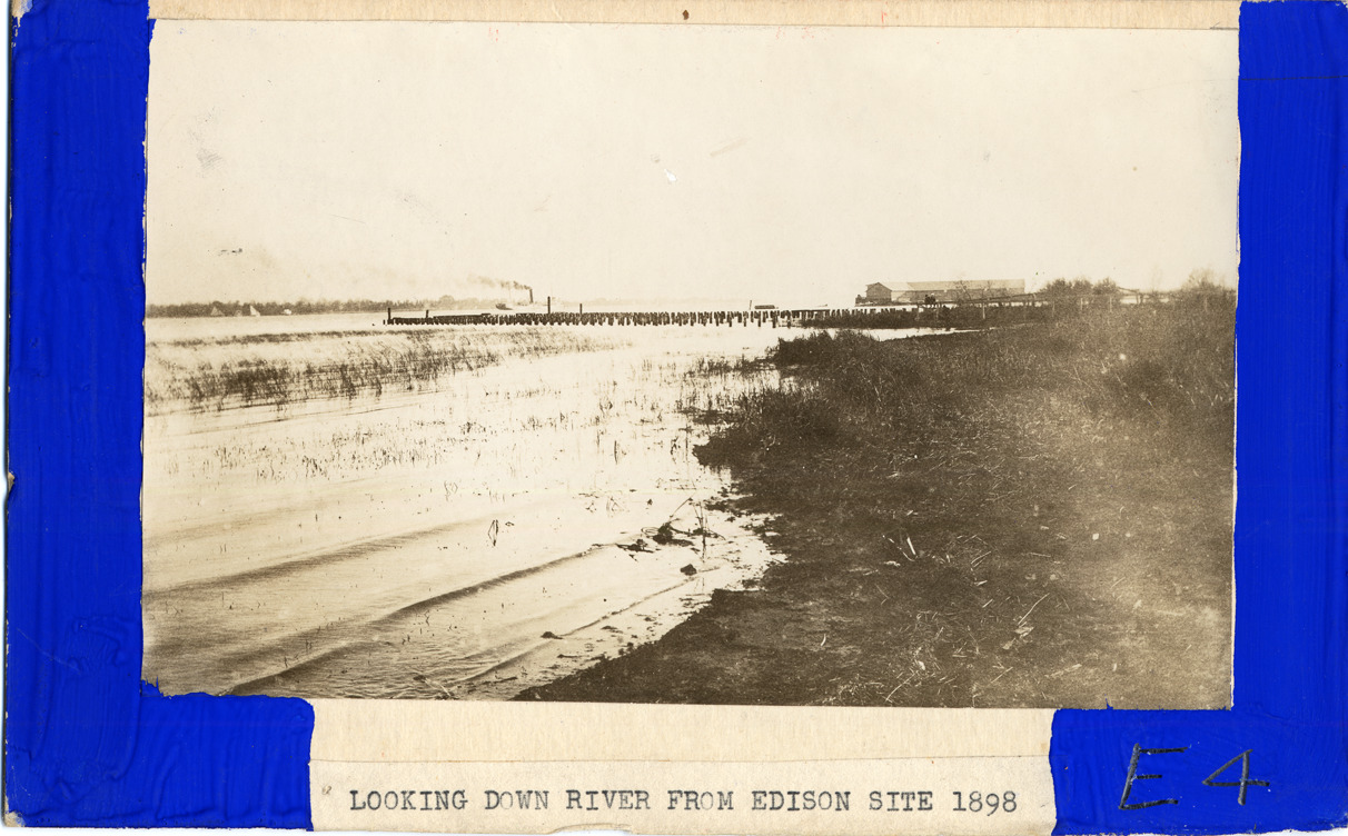 Favorite this☆ Looking downriver from Edison site, 1898 Description: View down the river, including pilings, barge, and buildings. Typed on label on mat front: "Looking down river from Edison site 1898." Details Resource ID: DPA0115 Subject: Building sites--Michigan--Detroit Detroit River (Mich. and Ont.) Albumen prints Photographic prints Date Issued: 1898 Format: 1 photographic print mounted on mat board ; image 4 x 6.5 in. Member of: Burton Historical Collection Filing Location: M/Localities-Delray-Industries and business houses-Edison plant Rights: Physical rights are retained by DPL. Copyright is retained in accordance with U.S. copyright laws.
