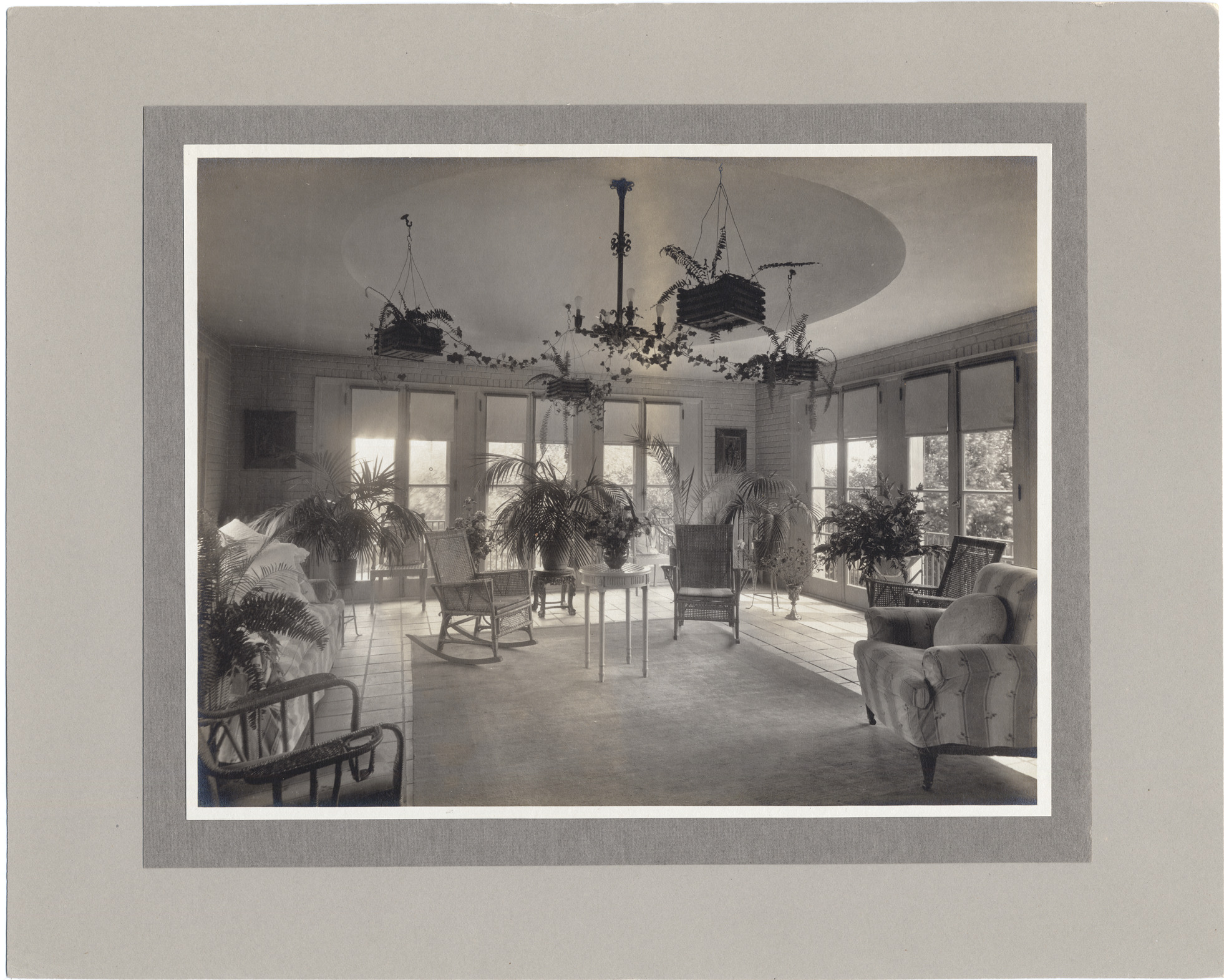 Favorite this☆ Garden room in Russell A. Alger house in Grosse Pointe Description: Garden room with windows on three sides, both wicker and upholstered furniture, and plants on stands and in hanging planters. Details Resource ID: DPA0252 Subject: Alger, R.A. (Russell Alexander), 1836-1907--Homes and haunts--Michigan--Grosse Pointe Architecture, Domestic--Michigan--Grosse Pointe Garden rooms--Michigan--Grosse Pointe Albumen prints Photographic prints Date Issued: Unknown year Format: 1 photographic print mounted on mat board ; image 7.25 x 9.25 in. Member of: Burton Historical Collection Filing Location: M/Localities-Grosse Pointe Rights: Physical rights are retained by DPL. Copyright is retained in accordance with U.S. copyright laws.