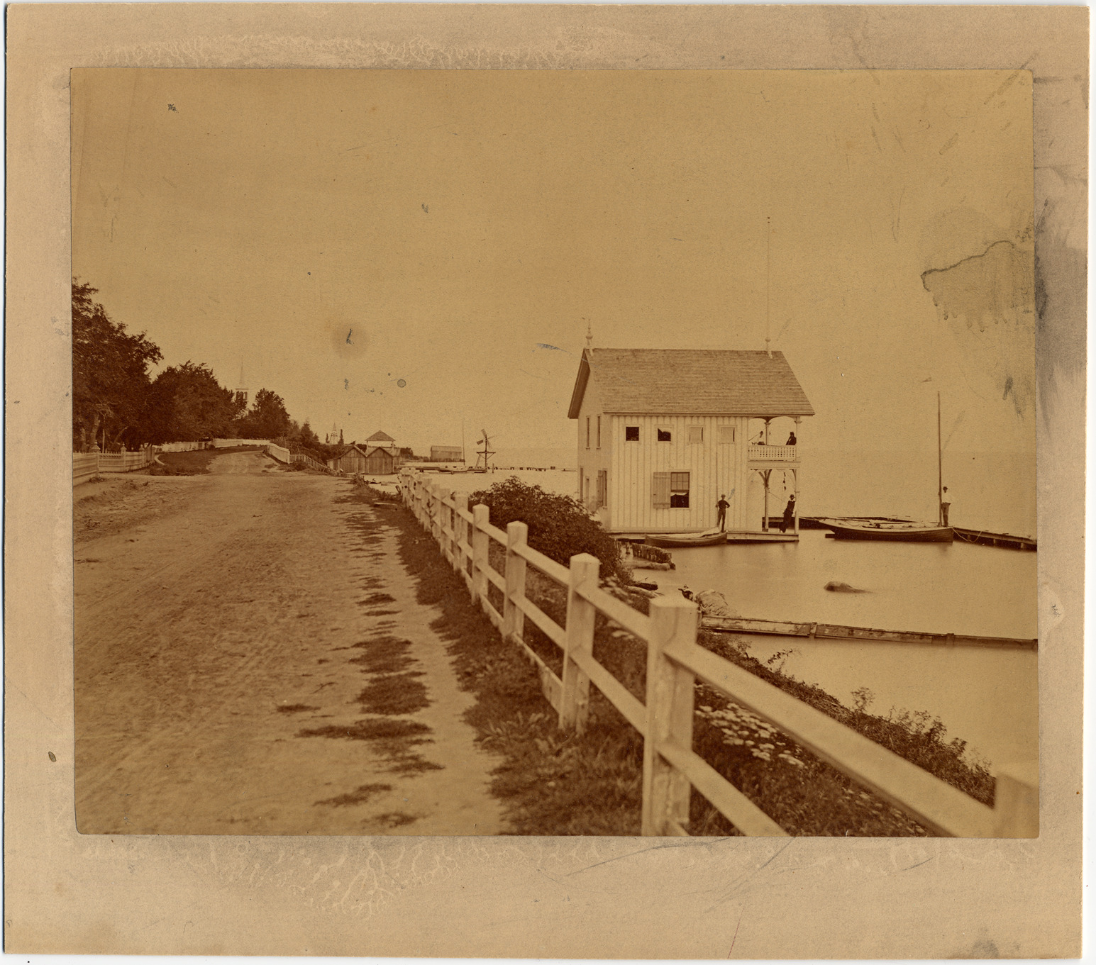 Favorite this☆ Henry Bourne Joy residence in Grosse Pointe, Michigan Description: Residence of Henry Bourne Joy, a two story wood frame house built on Lake St. Clair in Grosse Pointe, Michigan, with wooden fence and view of rural road at left. Details Resource ID: DPA0273 Subject: Joy, Henry B., (Henry Bourne), 1864-1936--Homes and haunts--Michigan--Grosse Pointe Wooden-frame houses--Michigan--Grosse Pointe Wooden fences--Michigan--Detroit Albumen prints Photographic prints Date Issued: Unknown year Format: 1 photographic print mounted on mat board ; image 7.25 x 9 in. Member of: Burton Historical Collection Filing Location: M/Localities-Grosse Pointe-Historic houses Rights: Physical rights are retained by DPL. Copyright is retained in accordance with U.S. copyright laws.