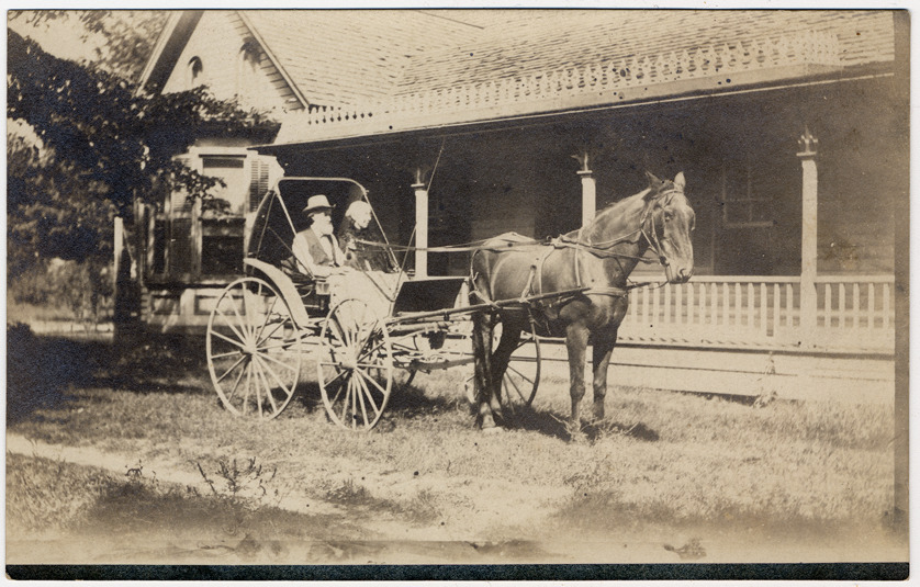 Favorite this☆ Couple in horse-drawn buggy in Holly, Michigan Description: Elderly couple in four wheel horse-drawn buggy in front of porch in Holly, Michigan. Details Resource ID: DPA0312 Subject: Horse-drawn vehicles--Michigan--Holly Porches--Michigan--Holly Postcards Photographic prints Date Issued: Unknown year Format: 1 postcard ; 3.5 x 5.5 in. Member of: Burton Historical Collection Filing Location: M/Localities-Holly Rights: Physical rights are retained by DPL. Copyright is retained in accordance with U.S. copyright laws.