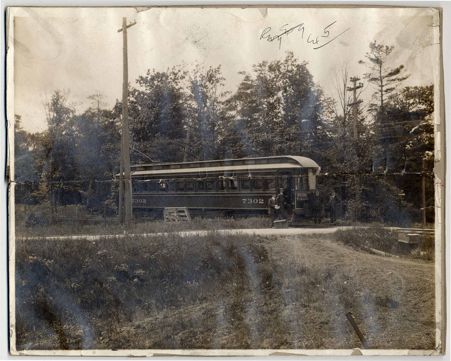 Favorite this☆ Locomotive in Marine City, Michigan Description: Four men stand in front of locomotive, no. 7302, in Marine City, with dirt road in foreground and trees in background. Written on photo back: "Marine City Anchorville Div. on short cut near Robert Landing." Details Resource ID: DPA0364 Creator: Manning Brothers Subject: Locomotives--Michigan--Marine City Trees--Michigan--Marine City Albumen prints Photographic prints Publisher: Manning Brothers Date Issued: Unknown year Format: 1 photographic print mounted on mat board ; image 8 x 9.75 in. Member of: Burton Historical Collection Filing Location: M/Localities-Marine City Rights: Physical rights are retained by DPL. Copyright is retained in accordance with U.S. copyright laws.