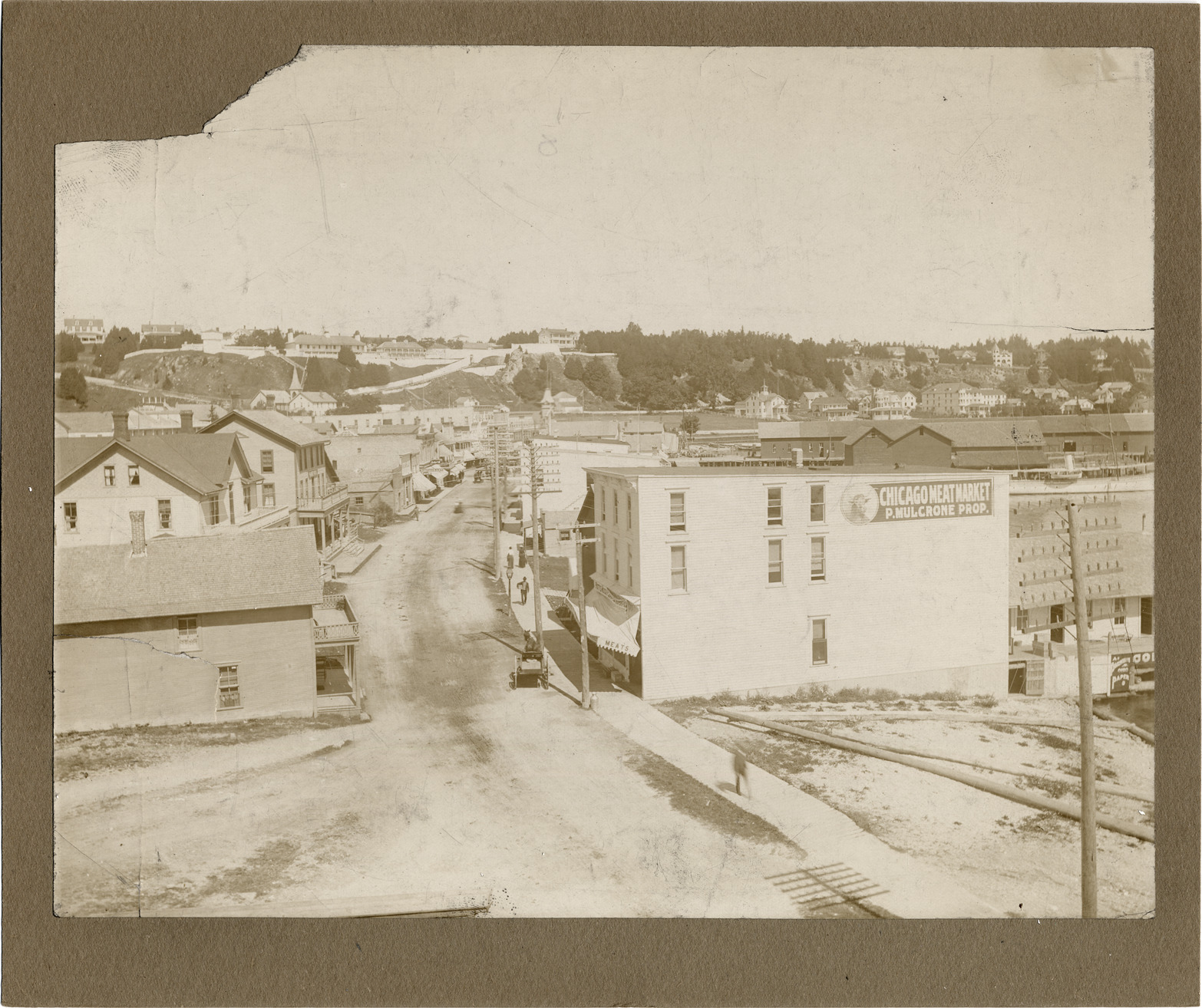 Favorite this☆ Mackinac Island street Description: View down a street on Mackinac Island, Michigan, with businesses including Chicago Meat Market, on both sides of street. Details Resource ID: DPA0368 Subject: Streets--Michigan--Mackinac Island Commercial buildings--Michigan--Mackinac Island Butchers--Michigan--Mackinac Island Albumen prints Photographic prints Date Issued: Unknown year Format: 1 photographic print mounted on stock ; image 7 x 9.5 in. Member of: Burton Historical Collection Filing Location: M/Localities-Mackinac Island Rights: Physical rights are retained by DPL. Copyright is retained in accordance with U.S. copyright laws.