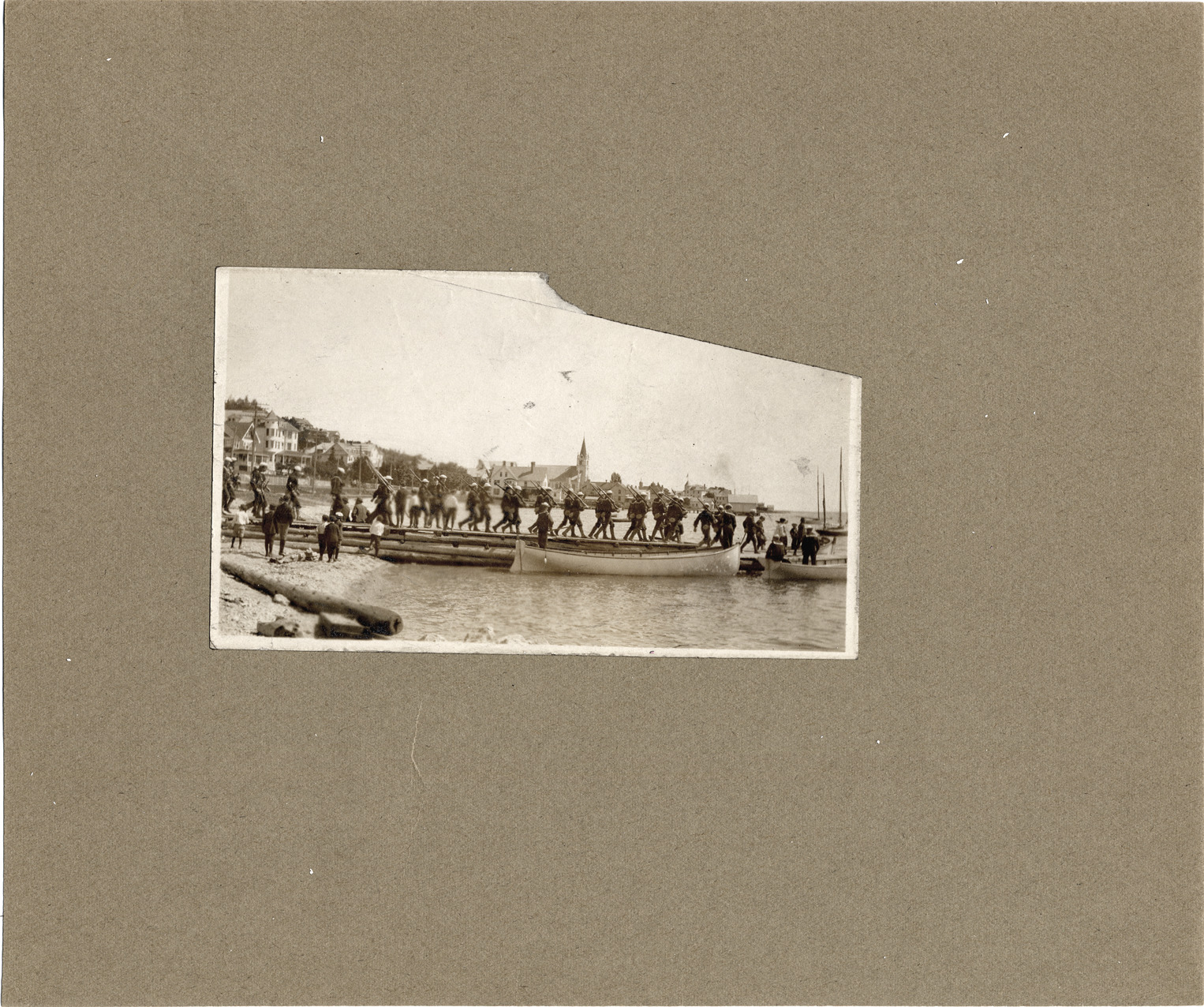 Favorite this☆ Sailors marching out Mackinac Island dock Description: Sailors marching out Mackinac Island dock with rifles. Observers on beach and in boats alongside. Sailboats at anchor beyond dock. Details Resource ID: DPA0413 Subject: Docks--Michigan--Mackinac Island Sailors--Michigan--Mackinac Island Albumen prints Photographic prints Date Issued: Unknown year Format: 1 photographic print mounted on stock ; image 3.25 x 5.5 in. Member of: Burton Historical Collection Filing Location: M/Localities-Mackinac Island Rights: Physical rights are retained by DPL. Copyright is retained in accordance with U.S. copyright laws.