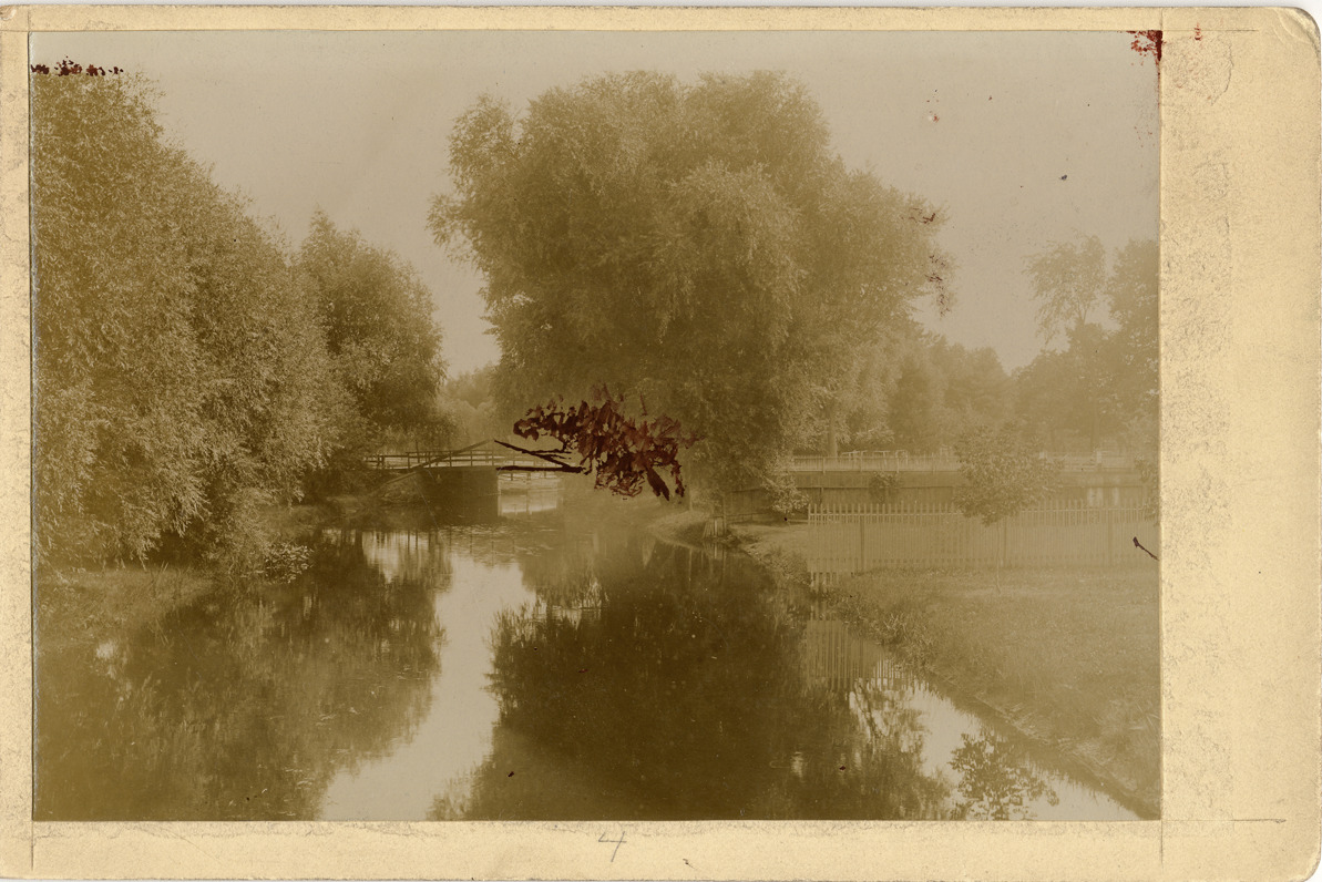 Favorite this☆ Bridge over Clinton River, Pontiac Description: View along the Clinton River, with bridge in center of frame. Handwritten on mat back: "On the Clinton, Pontiac." Details Resource ID: DPA0538 Subject: Clinton River (Mich.) Bridges--Michigan--Clinton River Albumen prints Photographic prints Date Issued: Unknown year Format: 1 photographic print mounted on mat board ; image 4.75 x 6.75 in. Member of: Burton Historical Collection Filing Location: M/Localities-Pontiac Rights: Physical rights are retained by DPL. Copyright is retained in accordance with U.S. copyright laws.