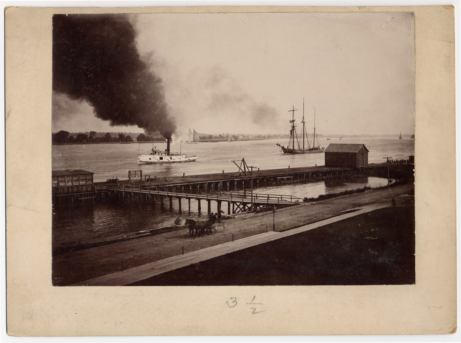 Favorite this☆ Schooner towing tugboat Description: View of a tugboat towing a schooner. Docks and horse-drawn carriage in foreground. Handwritten on mat back: "Passing to Oakland House, St. Clair Springs, Westrick." Details Resource ID: DPA0593 Subject: Schooners--Michigan--Saint Clair Tugboats--Michigan--Saint Clair Docks--Michigan--Saint Clair Albumen prints Photographic prints Date Issued: Unknown year Format: 1 photographic print mounted on mat board ; image 6 x 8 in. Member of: Burton Historical Collection Filing Location: M/Localities-St. Clair Rights: Physical rights are retained by DPL. Copyright is retained in accordance with U.S. copyright laws.