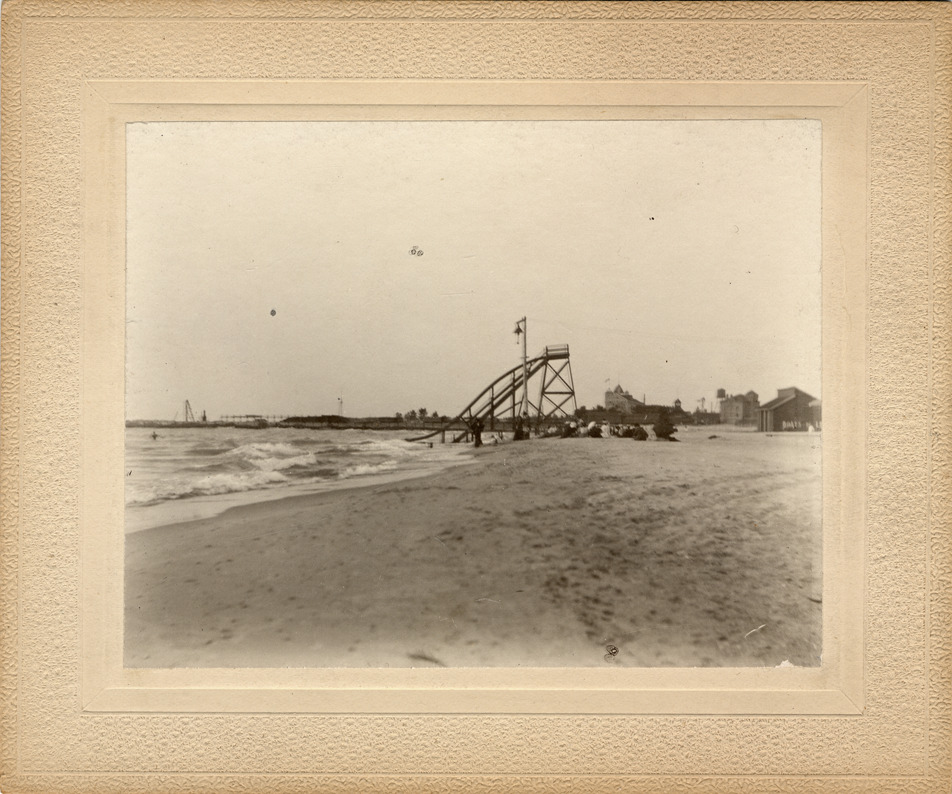 Favorite this☆ Water slide on St. Joseph beach Description: Water slide into surf on Lake Michigan. Several people sitting on sand around the base. Buildings and pier in background. Stamped on mat back: "E.W. Sprague, Detroit, Mich." Details Resource ID: DPA0615 Creator: Sprague, E.W. Subject: Beaches--Michigan--Saint Joseph Michigan, Lake Amusement rides--Michigan--Saint Joseph Photographers--Michigan--Detroit Albumen prints Photographic prints Date Issued: Unknown year Format: 1 photographic print mounted on mat board ; image 3.75 x 4.75 in. Member of: Burton Historical Collection Filing Location: M/Localities-St. Joseph Rights: Physical rights are retained by DPL. Copyright is retained in accordance with U.S. copyright laws.