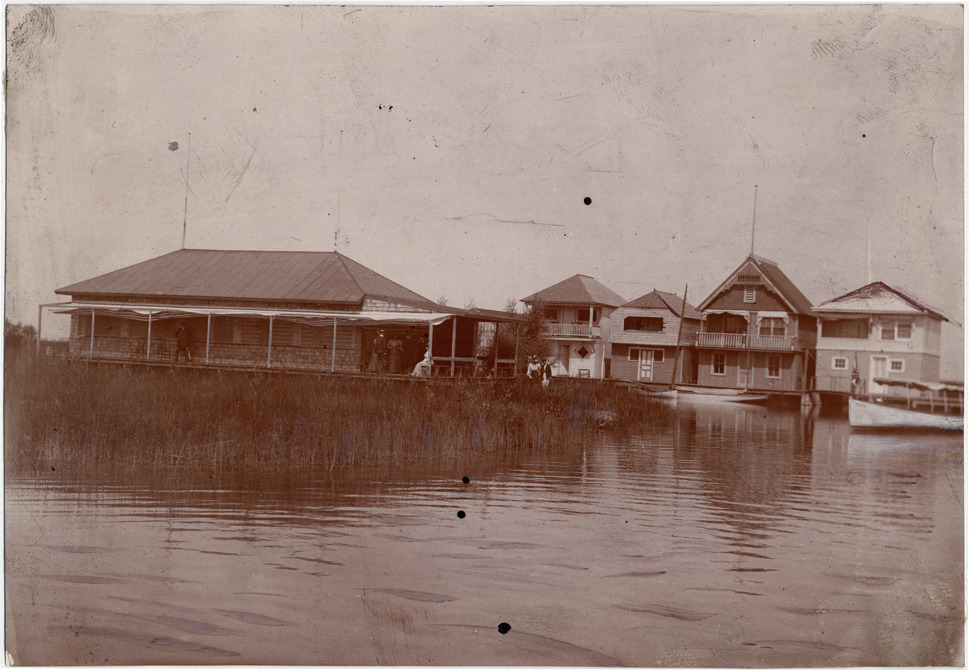 Favorite this☆ Group on porch past weedy shallows Description: Pavilion with covered porch in middle distance past weedy shallows. Group of people on porch. Anchored sailboats and motorboat. Cottages beyond, very close together. Handwritten on back: "MV." Details Resource ID: DPA0628 Subject: Porches--Michigan--Saint Clair County Dwellings--Michigan--Saint Clair County Vacation homes--Michigan--Saint Clair County Boats and boating--Michigan--Saint Clair, Lake (Mich. and Ont.) Photographic prints Date Issued: Unknown year Format: 1 photographic print ; image 4.5 x 6.5 in. Member of: Burton Historical Collection Filing Location: M/Localities-St. Clair Flats Rights: Physical rights are retained by DPL. Copyright is retained in accordance with U.S. copyright laws.