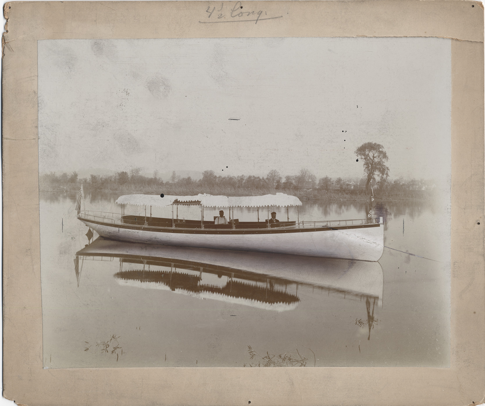 Favorite this☆ Motor launch with awning Description: Launch with seating for a large group, passenger area shaded by awning. Two seated men. Weedy shallows along shoreline. Details Resource ID: DPA0668 Subject: Boats and boating--Michigan--Saint Clair County Albumen prints Photographic prints Date Issued: Unknown year Format: 1 photographic print mounted on mat board ; image 7.5 x 9.5 in. Member of: Burton Historical Collection Filing Location: M/Localities-St. Clair Flats Rights: Physical rights are retained by DPL. Copyright is retained in accordance with U.S. copyright laws.