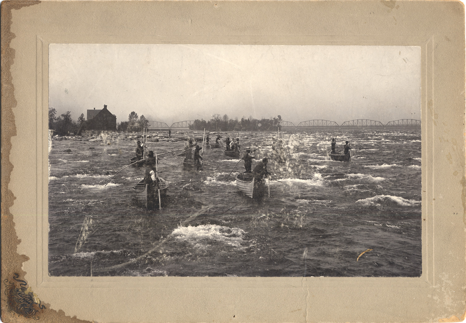 Favorite this☆ Fishermen at Sault Ste. Marie Description: Fishermen in small wooden boats fish in turbulent water at Sault Ste. Marie, with bridge in background. Printed on front of photo: "Allan Fanjcy, Sault Ste. Marie, Mich." Damage to surface of image in right center. Details Resource ID: DPA0730 Creator: Fanjcy, Allan Subject: Fishers--Michigan--Sault Sainte Marie Fishing--Michigan--Sault Sainte Marie Wooden boats--Michigan--Sault Sainte Marie Photographers--Michigan--Sault Sainte Marie Photographic prints Date Issued: Unknown year Format: 1 photographic print mounted on mat board ; image 5 x 8 in. Member of: Burton Historical Collection Filing Location: M/Localities-Sault Ste. Marie Rights: Physical rights are retained by DPL. Copyright is retained in accordance with U.S. copyright laws.