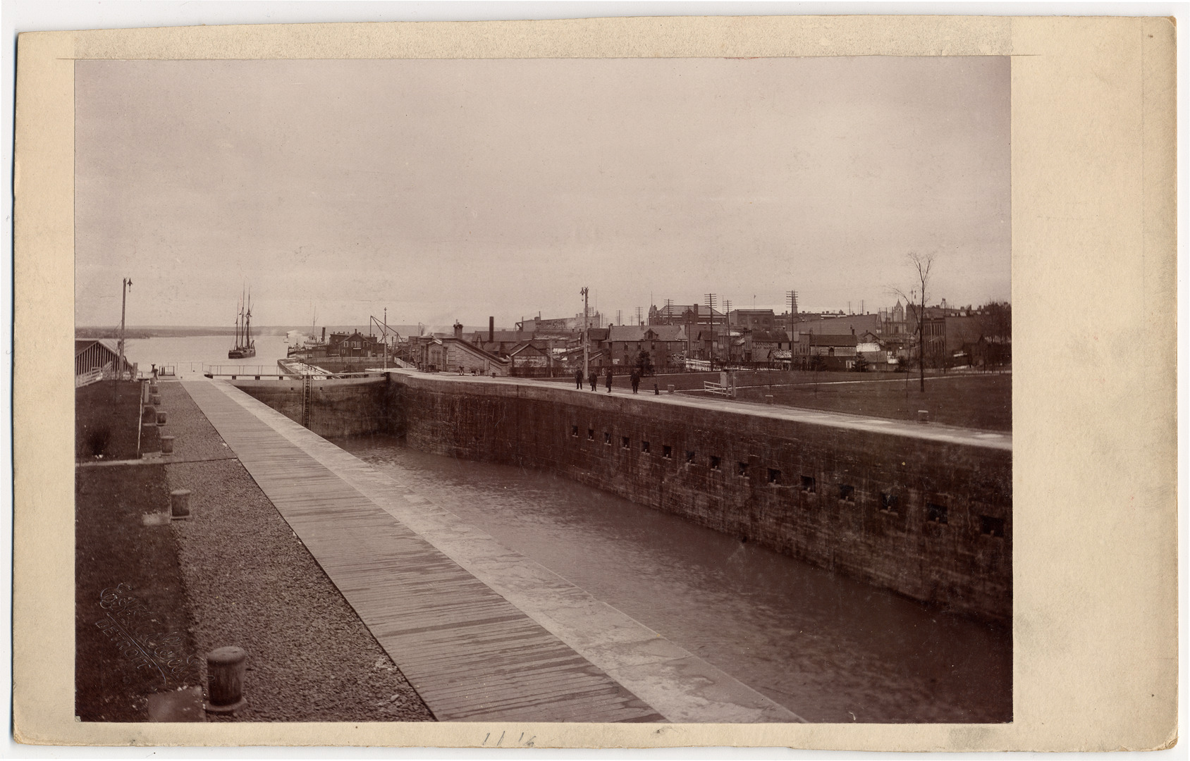 Favorite this☆ Lock pit, St. Mary's Falls Canal, Sault Ste. Marie Description: Lock pit of Sault Ste. Marie Canal. Small boat approaching in distance; town in background. Details Resource ID: DPA0758 Subject: Soo Locks (Mich.) Locks (Hydraulic engineering)--Michigan--Sault Sainte Marie Boats and boating--Michigan--Sault Sainte Marie Albumen prints Photographic prints Date Issued: Unknown year Format: 1 photographic print mounted on mat board ; image 6.25 x 9 in. Member of: Burton Historical Collection Filing Location: M/Localities-Sault Ste. Marie Rights: Physical rights are retained by DPL. Copyright is retained in accordance with U.S. copyright laws.