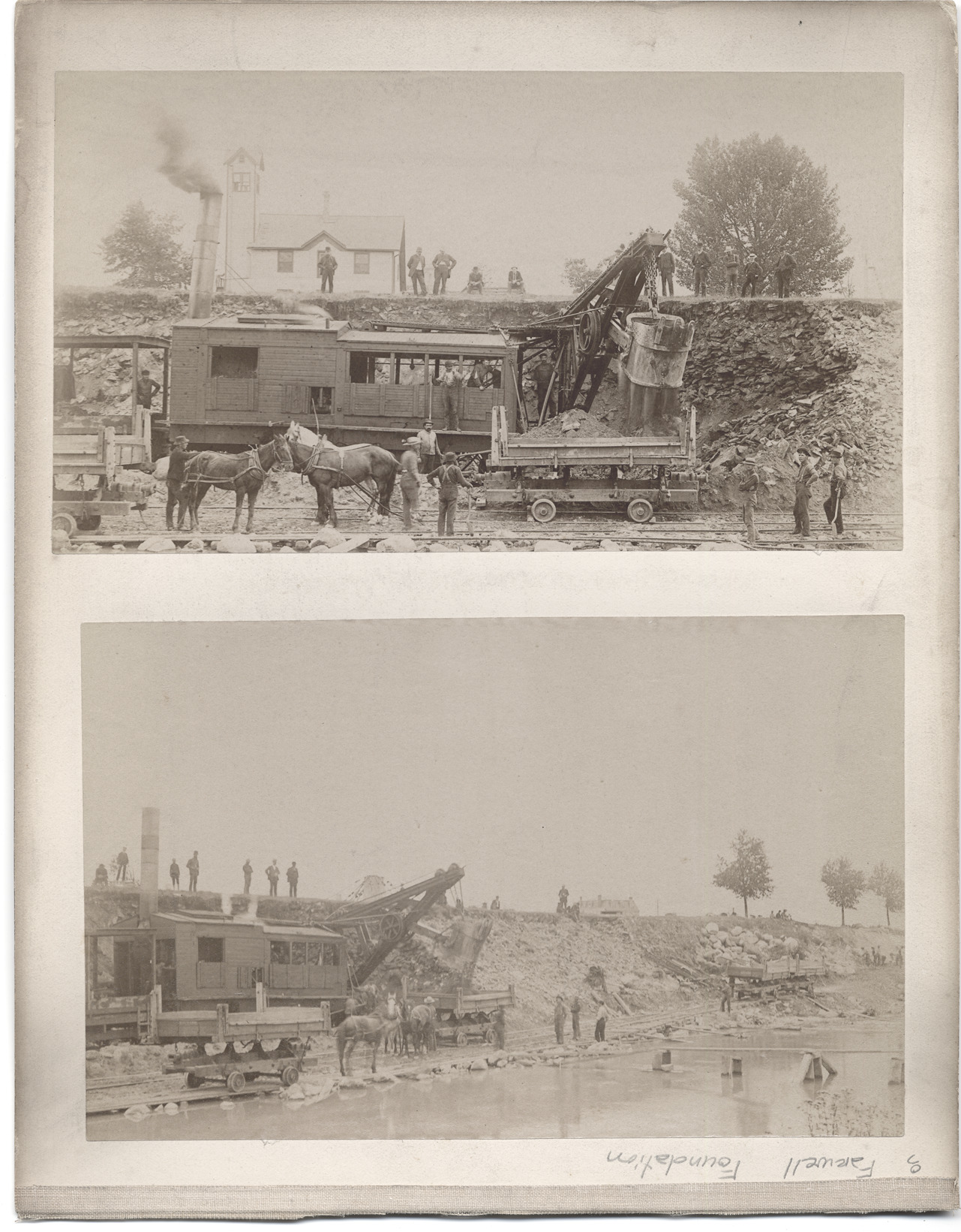 Favorite this☆ Lock pit, St. Mary's Falls Canal, Sault Ste. Marie Description: Two images of the St. Mary's Falls Canal construction site, both photos show earth moving machinery and train on track, with horses and workmen in pit. Details Resource ID: DPA0762 Subject: Locks (Hydraulic engineering)--Michigan--Sault Sainte Marie Locks (Hydraulic engineering)--Design and construction Earthmoving machinery--Michigan--Sault Sainte Marie Railroad tracks--Michigan--Sault Sainte Marie Soo Locks (Mich.) Albumen prints Photographic prints Date Issued: Unknown year Format: 2 photographic prints mounted on mat board ; 9.5 x 7.75 in. Member of: Burton Historical Collection Filing Location: M/Localities-Sault Ste. Marie Rights: Physical rights are retained by DPL. Copyright is retained in accordance with U.S. copyright laws.