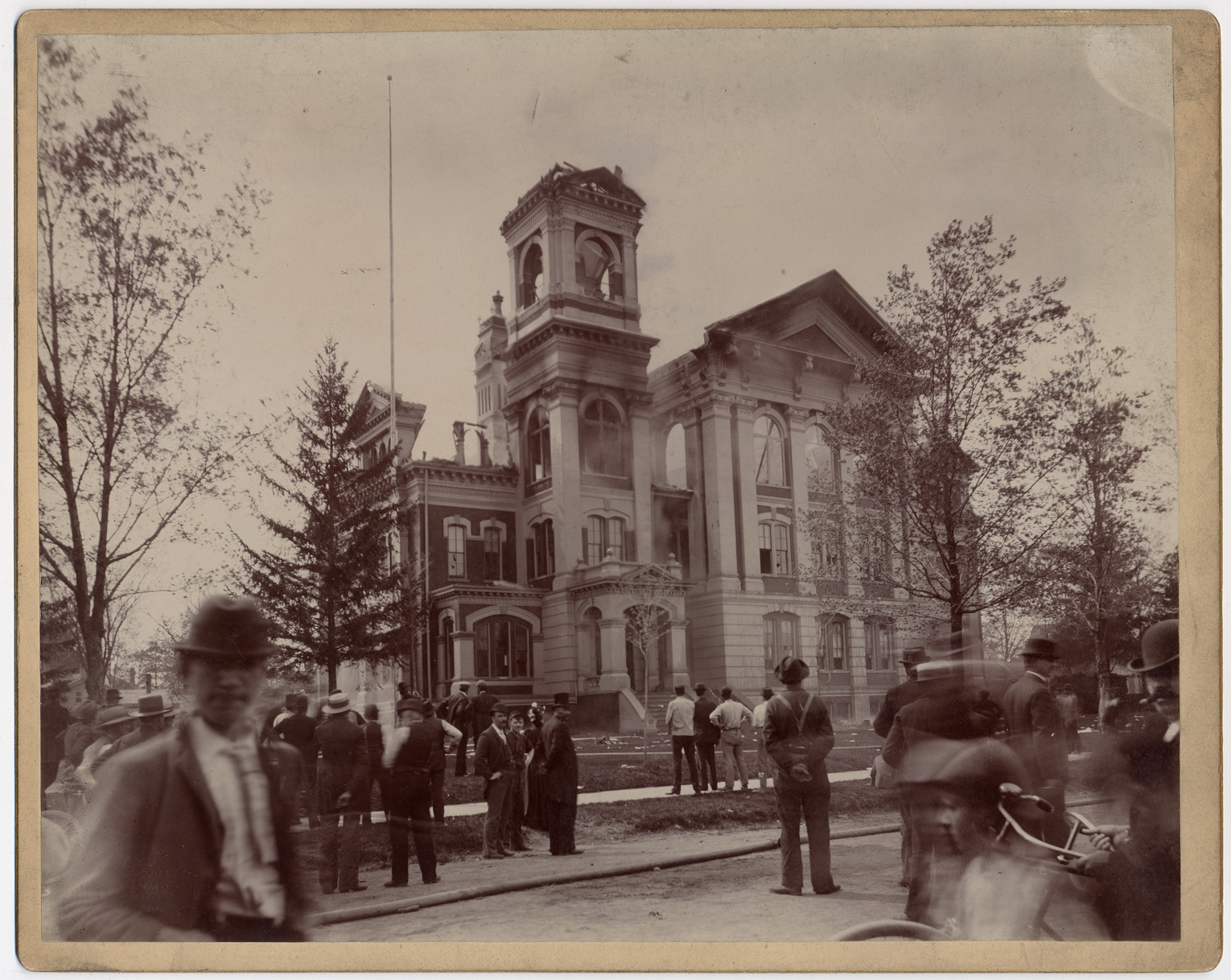 Favorite this☆ Ypsilanti High School after the fire Description: Ypsilanti High School after fire with scattered spectators. Handwritten on mat back: "Ypsilanti High School, May 23, '94." Details Resource ID: DPA0868 Subject: Fires--Michigan--Ypsilanti High school buildings--Fires and fire prevention High school buildings--Michigan--Ypsilanti Fire extinction--Michigan--Ypsilanti Albumen prints Photographic prints Date Issued: 1894-05-23 Format: 1 photographic print mounted on mat board ; image 7.5 x 9.5 in. Member of: Burton Historical Collection Filing Location: M/Localities-Ypsilanti Rights: Physical rights are retained by DPL. Copyright is retained in accordance with U.S. copyright laws.
