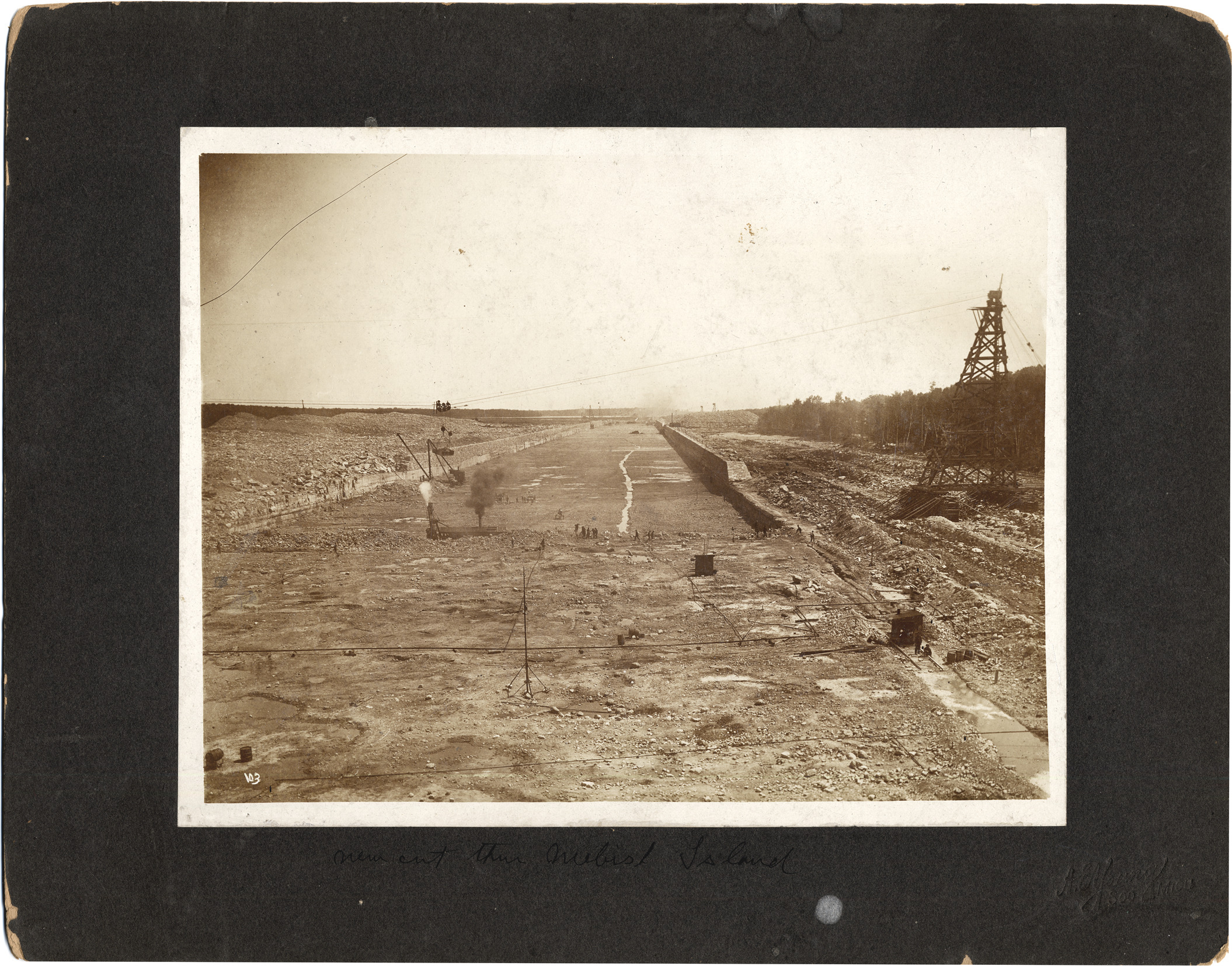 Favorite this☆ Digging new channel, Sault Ste. Marie Canal Description: New channel being cut. Handwritten on mat front: "New cut thru Neebish Island." Handwritten on mat back: "Digging of west Neebish channel, Sault Ste. Marie, circa 1906-1908." Details Resource ID: DPA0920 Subject: Saint Marys River (Mich. and Ont.)--Channels Channels (Hydraulic engineering)--Michigan--Sault Sainte Marie Channels (Hydraulic engineering)---Design and construction Albumen prints Photographic prints Date Issued: 1906 to 1908 Format: 1 photographic print mounted on mat board ; image 8 x 10.25 in. Member of: Burton Historical Collection Filing Location: LM/Localities-Sault Ste. Marie Rights: Physical rights are retained by DPL. Copyright is retained in accordance with U.S. copyright laws.