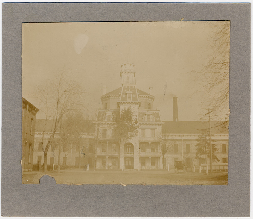 Favorite this☆ Unidentified building in Michigan Description: Unidentified building. Four-story central block with porches on each level, two-story wings extending to each side. Another two-story building to left of frame. Details Resource ID: DPA0975 Subject: Buildings--Michigan Albumen prints Photographic prints Date Issued: Unknown year Format: 1 photographic print mounted on stock ; image 3.75 x 4.75 in. Member of: Burton Historical Collection Filing Location: M/Buildings Rights: Physical rights are retained by DPL. Copyright is retained in accordance with U.S. copyright laws.