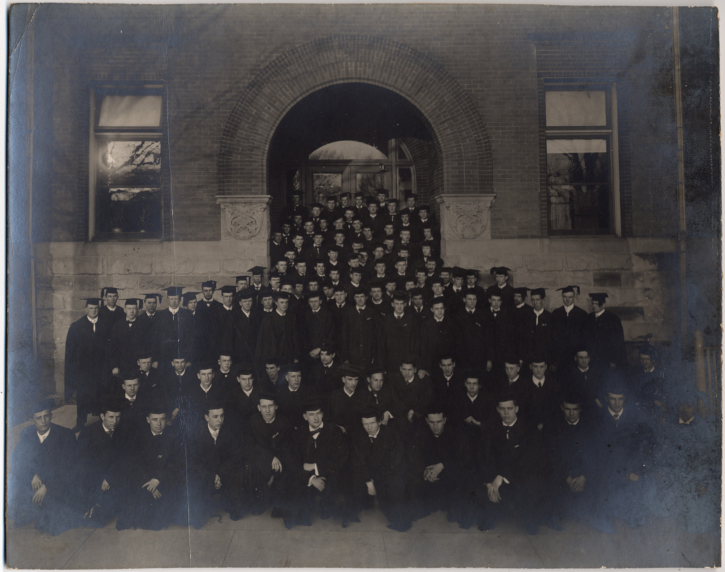 Favorite this☆ University of Michigan graduates Description: Group portrait of men in caps and gowns in front of campus building at the University of Michigan in Ann Arbor. Written on photo back: "ca. 1907." Details Resource ID: DPA1052 Subject: University of Michigan--Alumni and alumnae Portraits, Group--Michigan--Ann Arbor Photographic prints Date Issued: 1907 (year approximate) Format: 1 photographic print mounted on mat board; image 7.5 x 9.5 in. Member of: Burton Historical Collection Filing Location: M/Colleges & univ.-Univ. of Michigan Rights: Physical rights are retained by DPL. Copyright is retained in accordance with U.S. copyright laws.