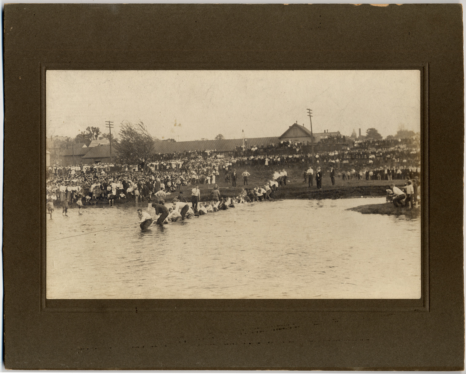 Favorite this☆ Tug of war at University of Michigan Description: University of Michigan students in tug of war in pond. Details Resource ID: DPA1053 Subject: Tug of war (Game) College students--Michigan--Ann Arbor University of Michigan--Students Albumen prints Photographic prints Date Issued: Unknown year Format: 1 photographic print mounted on mat board ; image 5 x 8.25 in. Member of: Burton Historical Collection Filing Location: M/Colleges and universities Rights: Physical rights are retained by DPL. Copyright is retained in accordance with U.S. copyright laws.