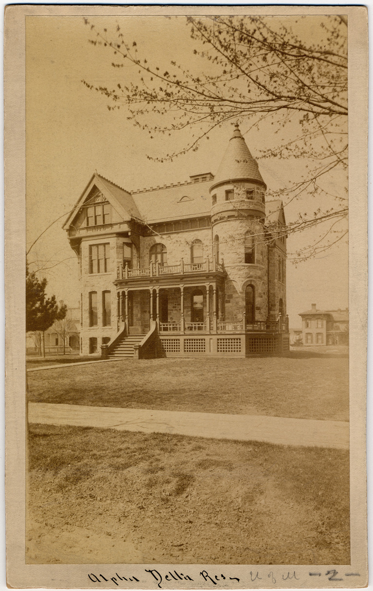 Favorite this☆ Alpha Delta house at the University of Michigan Description: Front of the Phi Kappa house a Queen Anne style building, at the University of Michigan in Ann Arbor. Written on front of photo: "Alpha Delta res." Details Resource ID: DPA1076 Subject: Greek letter societies--Michigan--Ann Arbor Architecture, Queen Anne--Michigan--Ann Arbor Albumen prints Photographic prints Date Issued: Unknown year Format: 1 photographic print mounted on mat board; image 7.5 x 4.5 in. Member of: Burton Historical Collection Filing Location: M/Colleges & univ.-U. of Mich. Rights: Physical rights are retained by DPL. Copyright is retained in accordance with U.S. copyright laws.