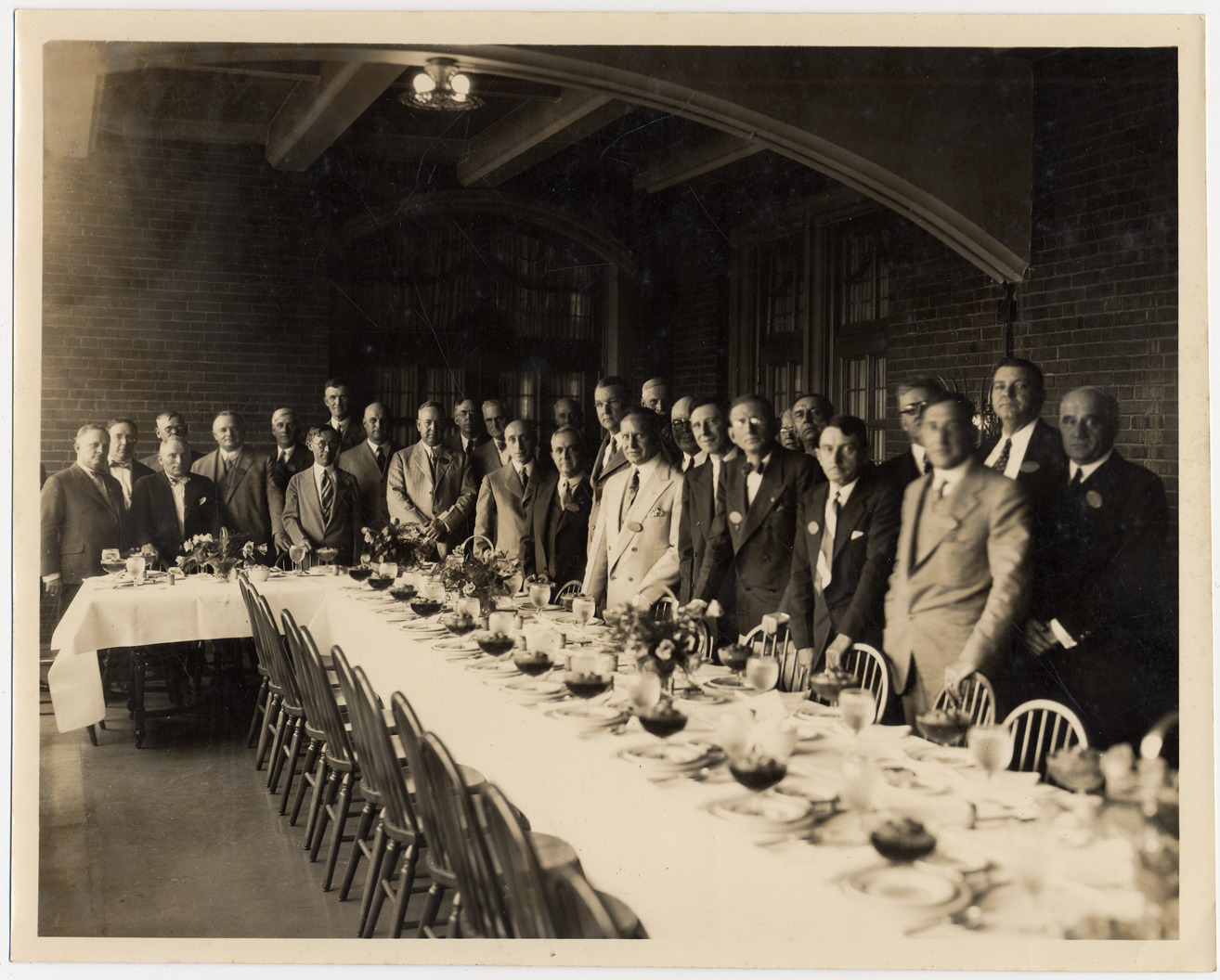 Favorite this☆ U of M class reunion portrait Description: Group portrait of the members of the 1905 class of University of Michigan's law school at reunion. Written on photo back: "1905 law class at reunion held Friday, June 20, 1930 at Michigan Union bldg., Ann Arbor, Michigan." Details Resource ID: DPA1088 Subject: Class reunions--Michigan--Ann Arbor Law schools--Michigan--Ann Arbor Portraits, Group--Michigan--Ann Arbor University of Michigan--Alumni and alumnae Albumen prints Photographic prints Date Issued: 1930-06-20 Format: 1 photographic print ; 7 x 9.75 in. Member of: Burton Historical Collection Filing Location: M/Colleges & Universities-University of Michigan Rights: Physical rights are retained by DPL. Copyright is retained in accordance with U.S. copyright laws.
