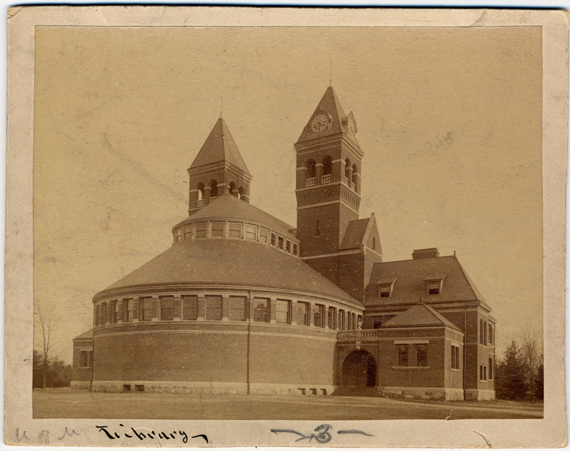 View of the library building at the University of Michigan, occupied in 1883 and replaced in 1915. Written on front of photo: "U. of M. library."