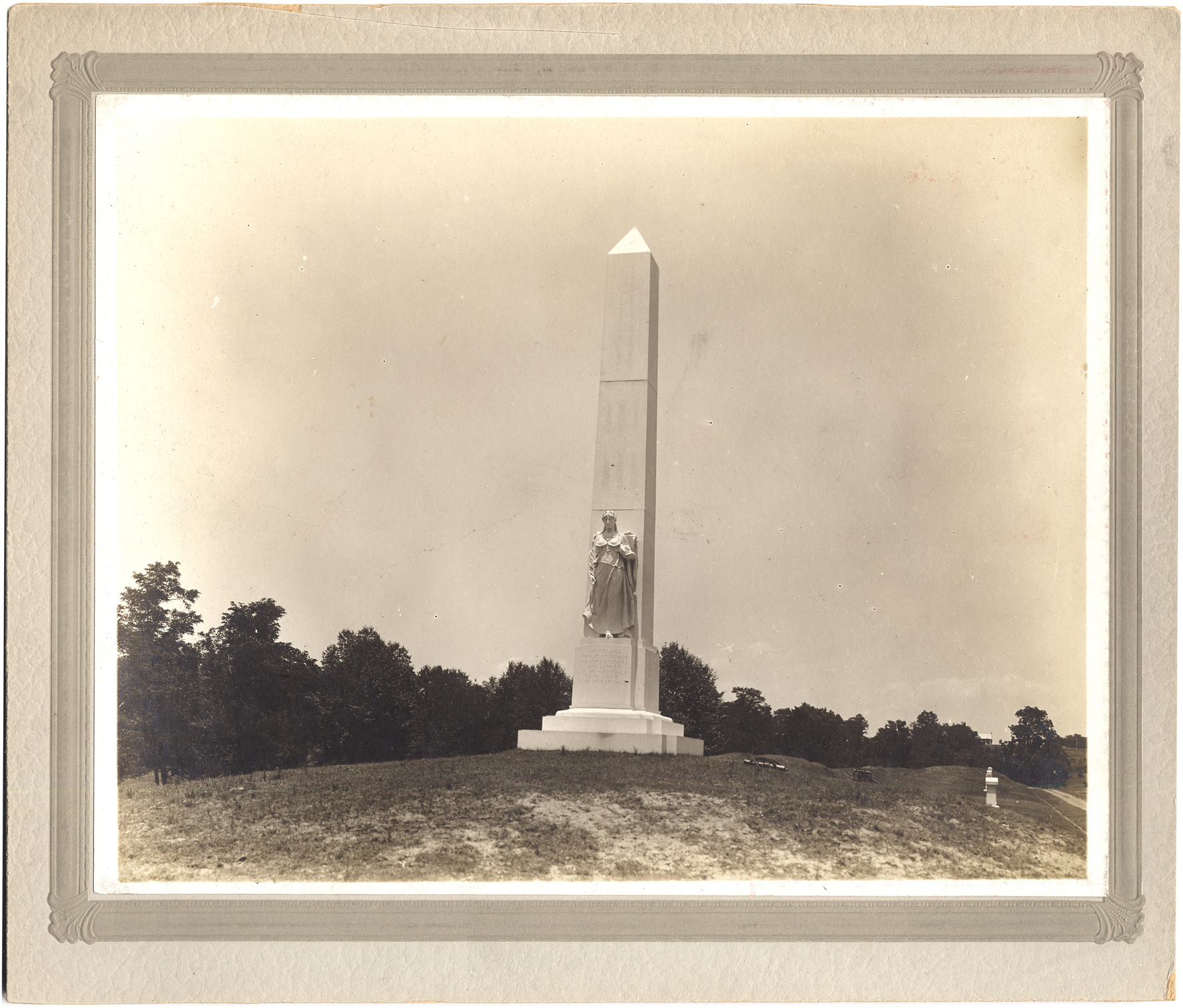 Favorite this☆ Monument to Michigan soldiers in siege of Vicksburg Description: Obelisk with statue of woman carrying plant and covered basket. Printed on monument: "Michigan's tribute of honor to her soldiers who served in the campaign and siege of Vicksburg." Details Resource ID: DPA1164 Subject: United States--History--Civil War, 1861-1865--Monuments Soldiers' monuments--Michigan Vicksburg National Military Park (Miss.) Albumen prints Photographic prints Date Issued: Unknown year Format: 1 photographic print mounted on mat board ; image 8.25 x 10.25 in. Member of: Burton Historical Collection Filing Location: M/History-Civil War Rights: Physical rights are retained by DPL. Copyright is retained in accordance with U.S. copyright laws.