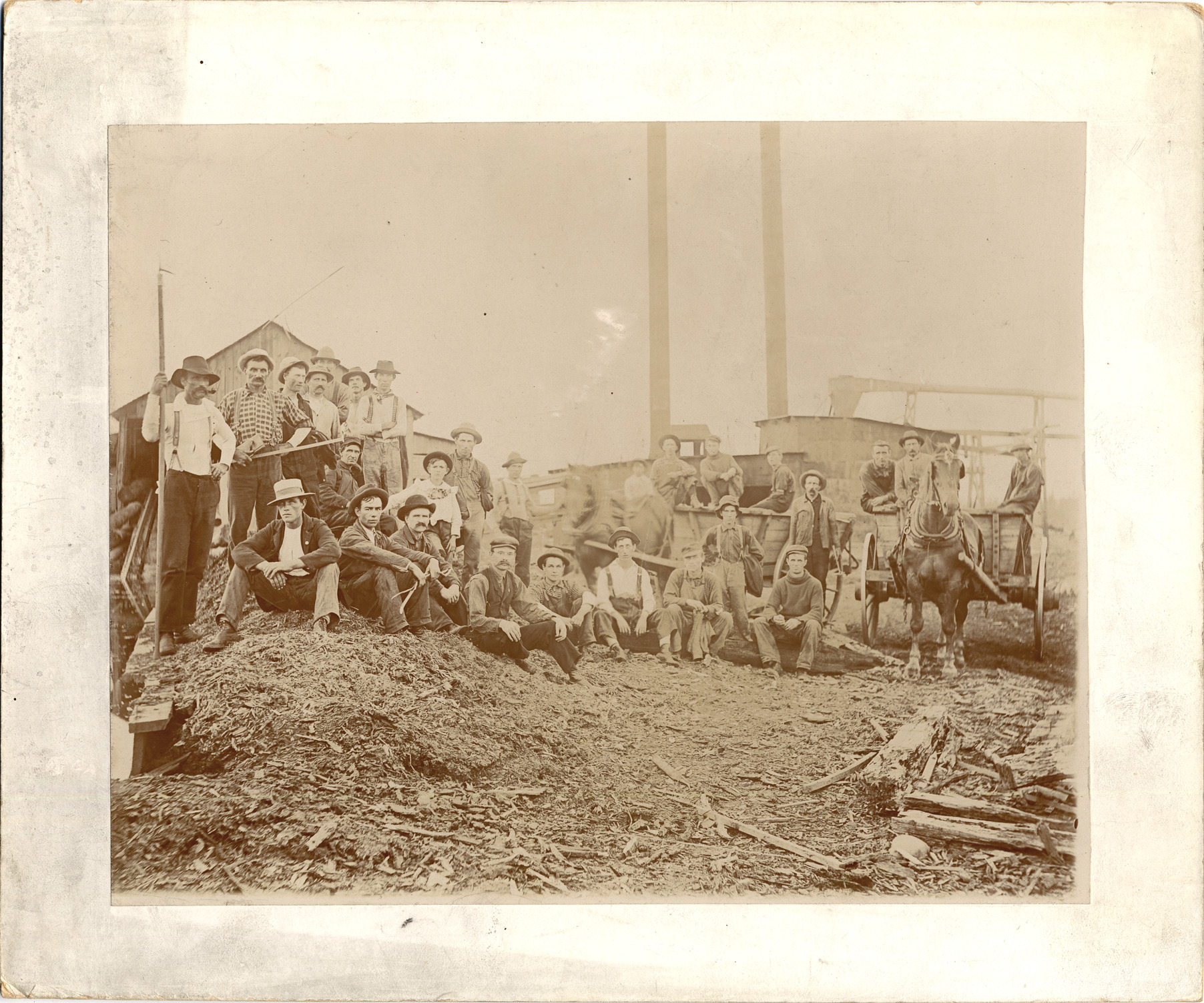 Favorite this☆ Sawmill workers in front of mill Description: Group of men in front of sawmill on pile of woodchips. Two horse-drawn wagons. Details Resource ID: DPA1227 Subject: Sawmills--Michigan--Clare County Sawmill workers--Michigan--Clare County Albumen prints Photographic prints Date Issued: Unknown year Format: 1 photographic print mounted on mat board ; image 8 x 9.75 in. Member of: Burton Historical Collection Filing Location: M/Lumber industry & trade-Clare Co. Rights: Physical rights are retained by DPL. Copyright is retained in accordance with U.S. copyright laws.