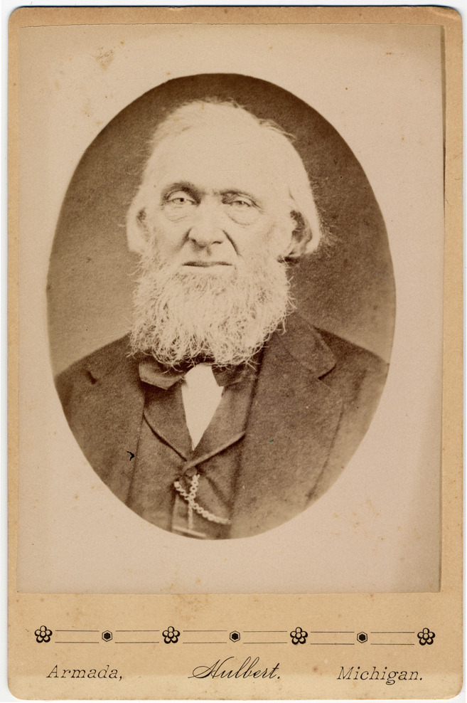 Favorite this☆ Portrait of an elderly man by Hulbert of Armada, Michigan Description: Portrait of an elderly man with white hair and beard dressed in three-piece suit and bowtie with watch chain. Printed on front of photo: "Hulbert, Armada, Mich." Details Resource ID: DPA1409 Creator: Hulbert Subject: Older men--Michigan--Portraits Photographers--Michigan--Armada Cabinet photographs Photographic prints Date Issued: Unknown year Format: 1 photographic print mounted on mat board ; image 5.5 x 4 in. Member of: Burton Historical Collection Filing Location: M/Photographers-Armada Rights: Physical rights are retained by DPL. Copyright is retained in accordance with U.S. copyright laws.