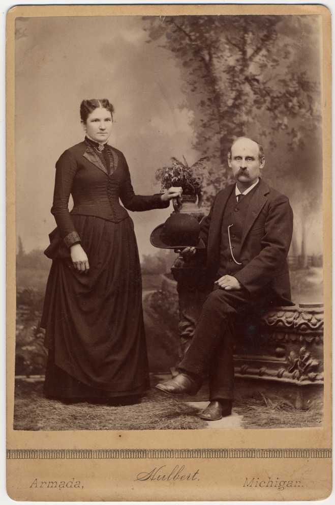 Portrait of a man and woman by Hulbert of Armada, Michigan