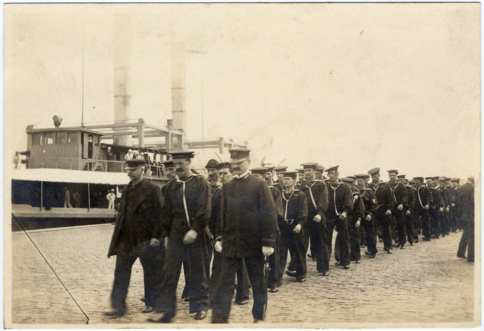 Favorite this☆ Line of sailors walking near ship Description: Double line of U.S. Navy sailors in uniform walking on shore led by two officers, ship in background. Embossed on front: "C.M. Hayes & Co., Detroit, Mich." Handwritten on back: "Edwin B. Nall." Details Resource ID: DPA1594 Creator: Hayes, Clarence M. Subject: Spanish-American War, 1898 Sailors--United States Photographers--Michigan--Detroit Photographic prints Date Issued: 1898 Format: 1 photographic print ; 4.5 x 6.5 in. Member of: Burton Historical Collection Filing Location: M/History-Spanish-American War, 1898 Rights: Physical rights are retained by DPL. Copyright is retained in accordance with U.S. copyright laws.