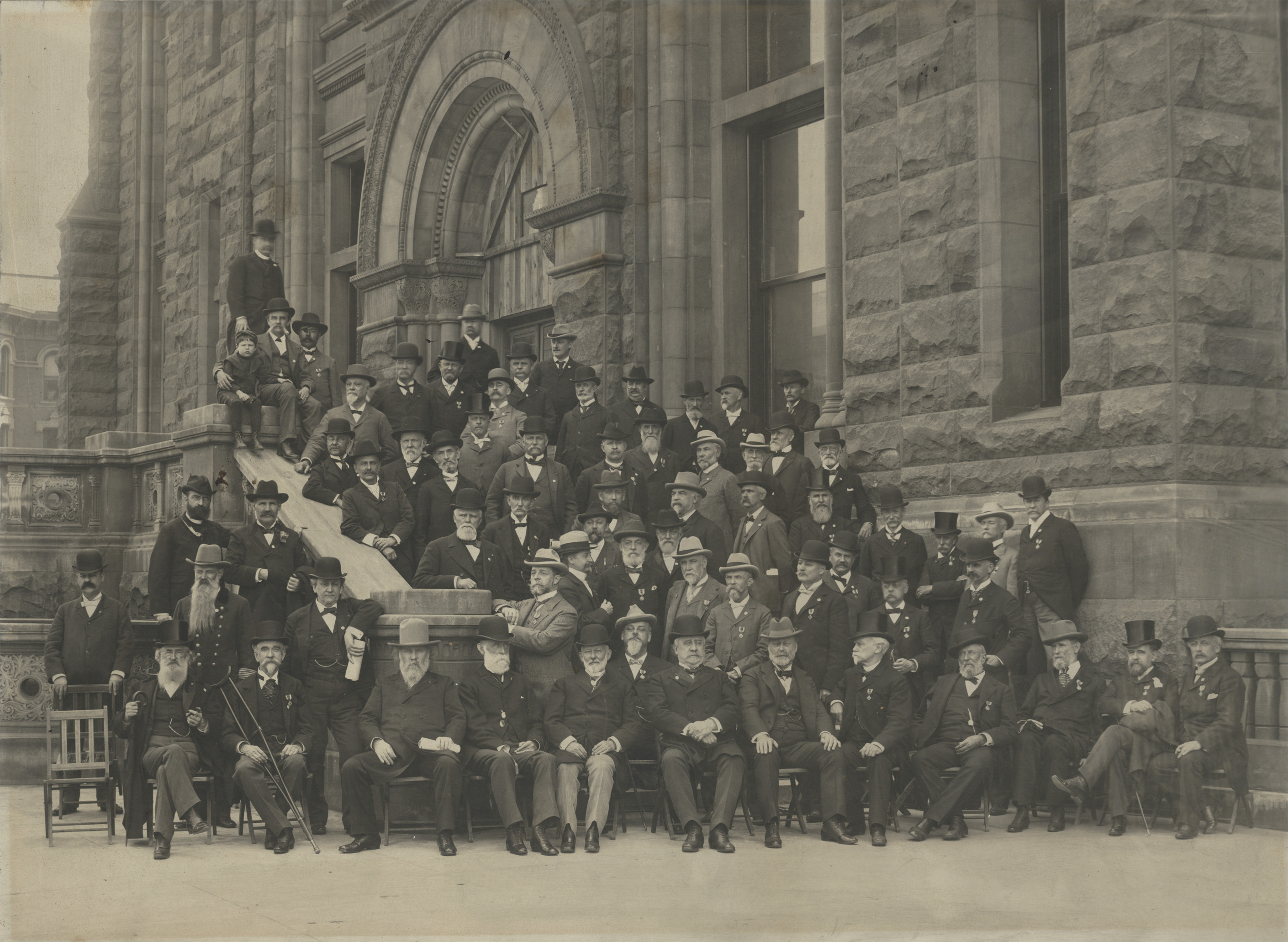 Favorite this☆ Group portrait of members of MOLLUS Description: Members of MOLLUS posed on steps of unidentified building, one small boy in picture. Stamped on mat back: "Hughes & Sarjeant, photographers, 242 Woodward Ave., Detroit, Mich." Details Resource ID: DPA1743 Creator: Hughes & Sarjeant Subject: Military Order of the Loyal Legion of the United States--Portraits Portraits, Group--Michigan--Detroit Photographers--Michigan--Detroit Photographic prints Date Issued: Unknown year Format: 1 photographic print mounted on mat board ; 14 x 19 in. Member of: Burton Historical Collection Filing Location: LM/Organizations-Military Order of the Loyal Legion of the United States Rights: Physical rights are retained by DPL. Copyright is retained in accordance with U.S. copyright laws.
