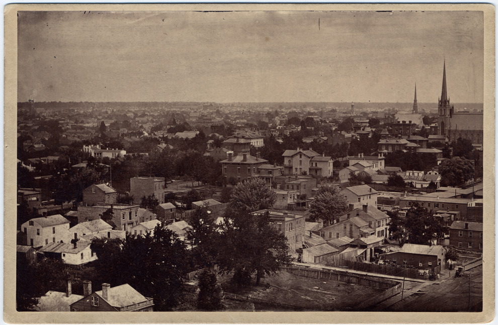 Favorite this☆ View from M.C.R.R. elevator Description: View from height, probably the Michigan Central depot, in Detroit. Looks like the view toward downtown, including Wayne County Building on right past two church spires. Handwritten on mat back: "Taken from M.C.R.R. elevator about 1864 to 1866." Details Resource ID: DPA1756 Subject: Michigan Central Railroad Company Detroit (Mich.)--Aerial views Buildings--Michigan--Detroit Aerial views Albumen prints Photographic prints Date Issued: 1864 to 1866 Format: 1 photographic print mounted on cardboard ; 4.25 x 6.5 in. Member of: Burton Historical Collection Filing Location: D/1866 Rights: Physical rights are retained by DPL. Copyright is retained in accordance with U.S. copyright laws.