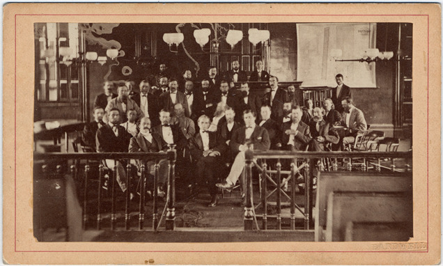 Favorite this☆ Group of employees in City Hall Description: Large group of employees posing for photograph in City Hall. All wearing dark suits with bow-ties. Stamped on front: "Bardwell." Details Resource ID: DPA1834 Creator: Bardwell, Jex, 1824-1902 Subject: City halls--Michigan--Detroit Municipal officials and employees--Michigan--Detroit Photographers--Michigan--Detroit Albumen prints Photographic prints Date Issued: Unknown year Format: 1 photographic print mounted on mat board : image 2.25 x 3.75 in. Member of: Burton Historical Collection Filing Location: D/Buildings-City Hall-1835-71 Rights: Physical rights are retained by DPL. Copyright is retained in accordance with U.S. copyright laws.