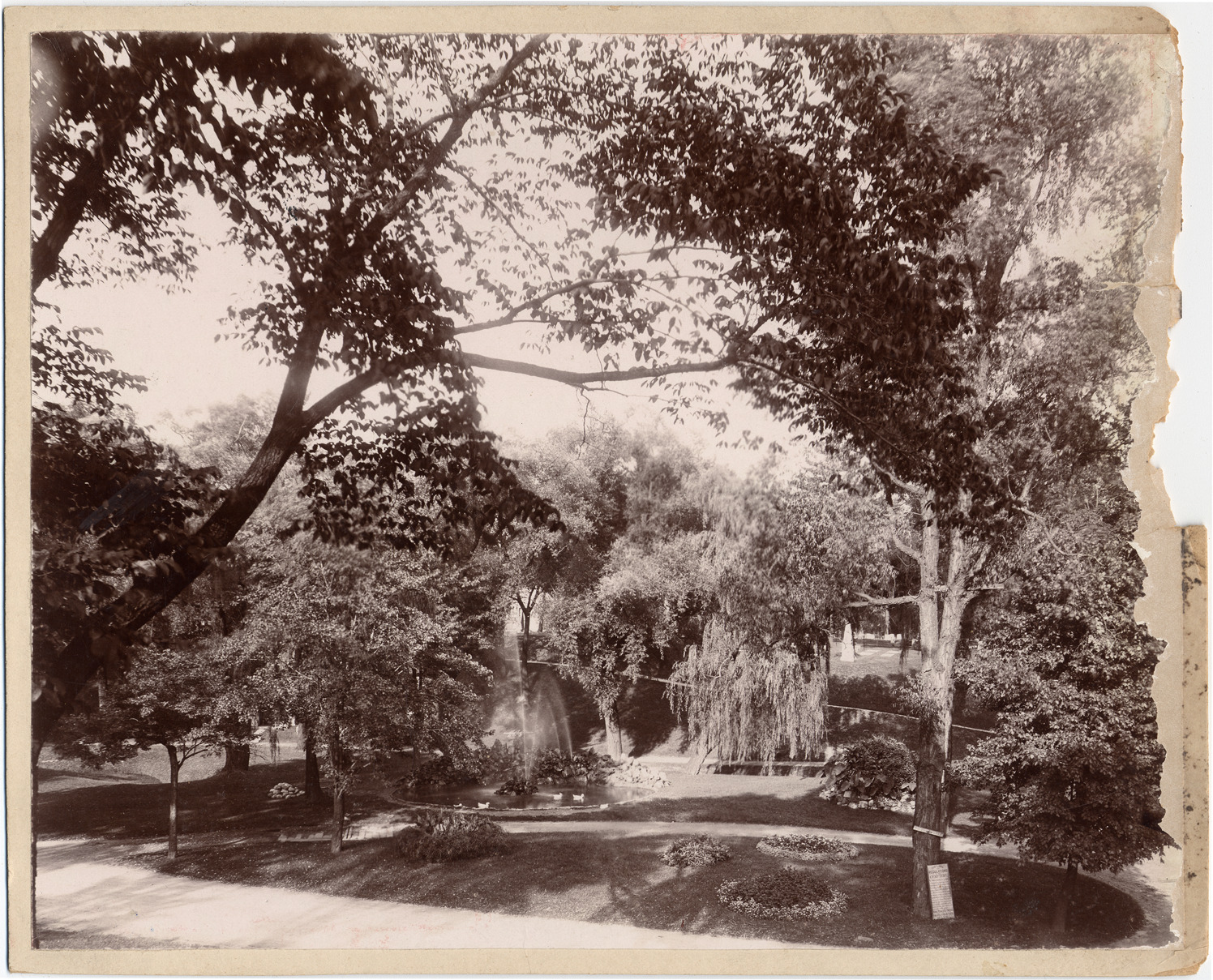 Favorite this☆ Elmwood Cemetery Description: View fron height across park-like expanse of Elmwood cemetery, with fountain and swans in mid-frame. Trees frame view and reveal scattered gravestones. Handwritten on mat back: "Folder 2, 47." Damage to right side of photograph and mat. Details Resource ID: DPA1908 Subject: Elmwood Cemetery (Detroit, Mich.) Fountains--Michigan--Detroit Sepulchral monuments--Michigan--Detroit Albumen prints Photographic prints Date Issued: Unknown year Format: 1 photographic print mounted on mat board ; image 7.75 x 9.5 in. Member of: Burton Historical Collection Filing Location: D/Cemeteries-Elmwood Rights: Physical rights are retained by DPL. Copyright is retained in accordance with U.S. copyright laws.