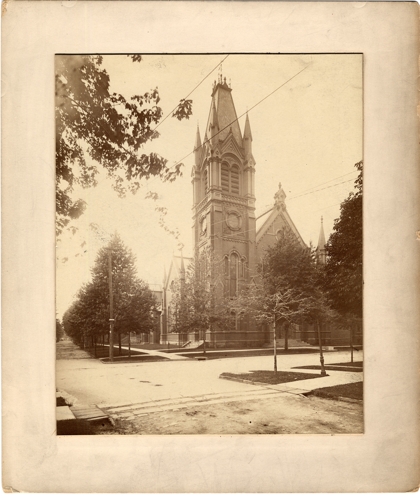 Favorite this☆ First Baptist Church on Cass Description: First Baptist Church: large dark building with tall bell tower, cross on top. Crossroad of streets in foreground. Handwritten on back: "First Baptist, Cass Ave. church ded. April 25, 1875." Details Resource ID: DPA1945 Subject: Baptist church buildings--Michigan--Detroit Photographic prints Date Issued: Unknown year Format: 1 photographic print mounted on mat board ; image 8.75 x 7.25 in. Member of: Burton Historical Collection Filing Location: D/Churches-Baptist-First Rights: Physical rights are retained by DPL. Copyright is retained in accordance with U.S. copyright laws.