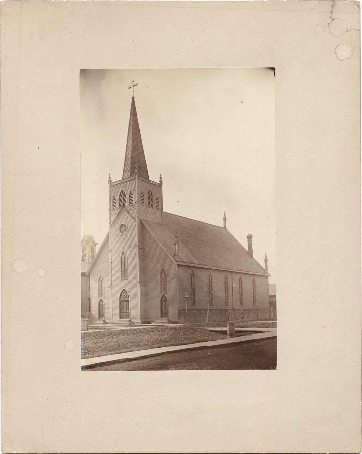 Favorite this☆ St. Peter's Evangelical German Church Description: St. Peter's Evangelical (German) Church, located on northwest corner of Chene and Pierce St. Dark paneled church with Gothic-style windows. Tall spire has cross on top. Stamped on front: "B.F.K." Handwritten on back: "About 1880." Details Resource ID: DPA1991 Subject: Protestant church buildings--Michigan--Detroit Photographic prints Date Issued: 1880 (year approximate) Format: 1 photographic print mounted on mat board ; image 6.5 x 4.25 in. Member of: Burton Historical Collection Filing Location: D/Churches-Lutheran-St. Peter's Evangelical (German) Note (Content): Silas Farmer Collection Rights: Physical rights are retained by DPL. Copyright is retained in accordance with U.S. copyright laws.