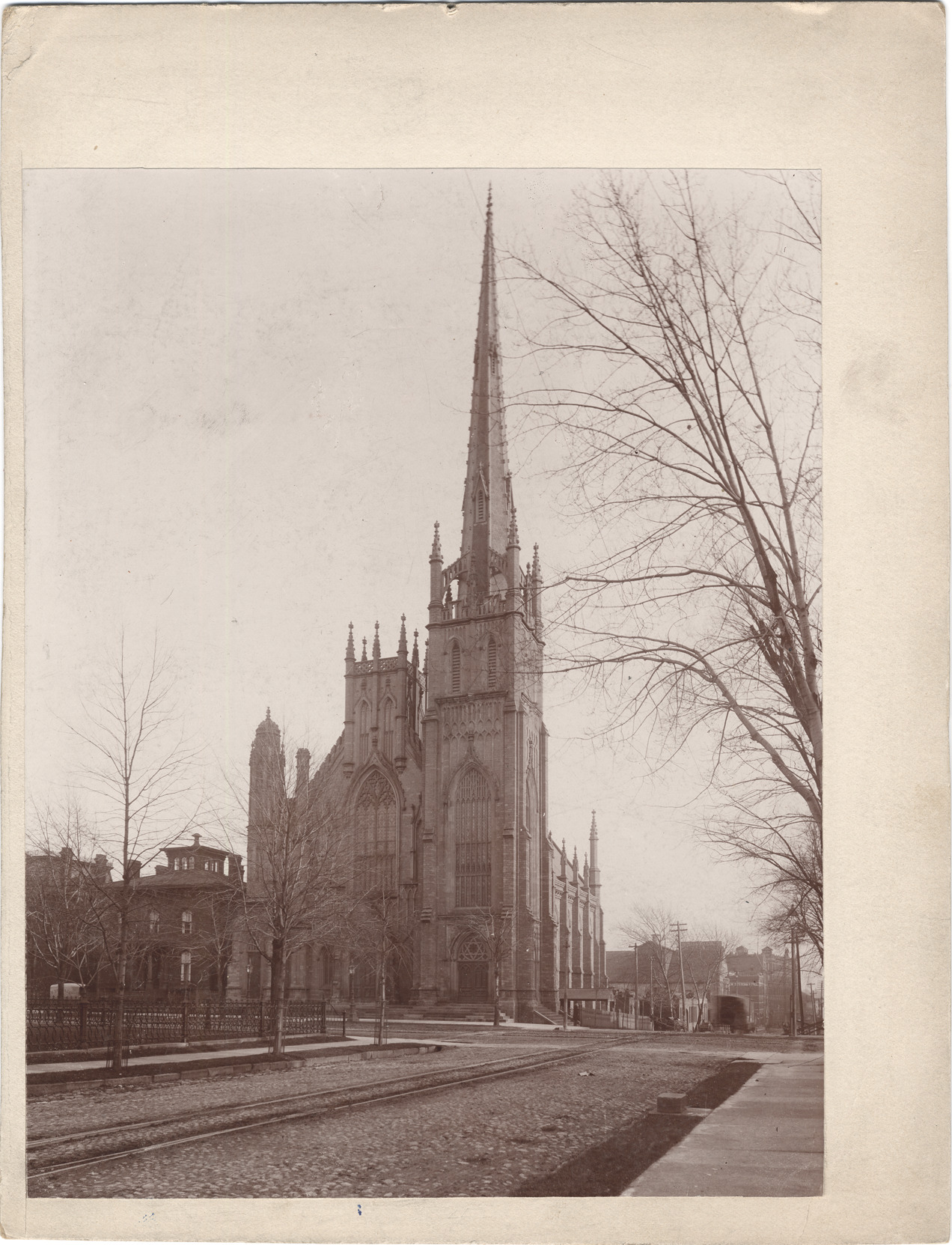 Favorite this☆ Fort Street Presbyterian Church Description: Church viewed at an angle across intersection of Third Ave. and Fort St.; trolley tracks down Third. Metal fence on n.e. corner; leafless trees. Handwritten on mat back: "The Fort St. Presbyterian, s.e. corner Fort and 3rd. 312." Details Resource ID: DPA2040 Subject: Presbyterian church buildings--Michigan--Detroit Streets--Michigan--Detroit Albumen prints Photographic prints Date Issued: Unknown year Format: 1 photographic print mounted on mat board ; image 9.25 x 7.25 in. Member of: Burton Historical Collection Filing Location: D/Churches-Presbyterian-Fort Street Rights: Physical rights are retained by DPL. Copyright is retained in accordance with U.S. copyright laws.