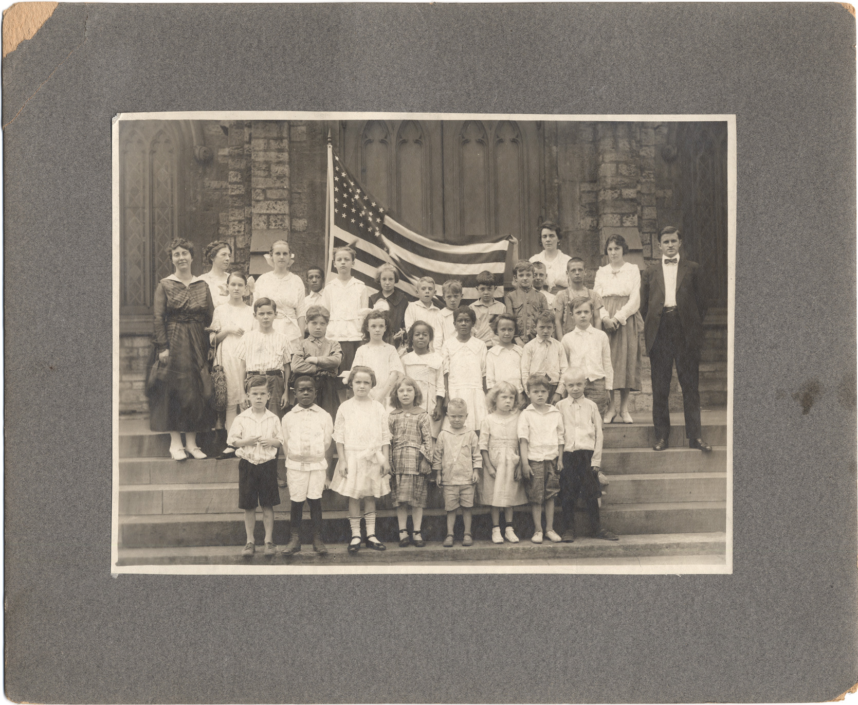 Favorite this☆ Fort Street Presbyterian Church Sunday school class Description: Children in Sunday school, wide age range, with teachers, on steps in front of main door. U.S. flag spread behind group. Details Resource ID: DPA2043 Subject: Presbyterian church buildings--Michigan--Detroit Albumen prints Photographic prints Date Issued: Unknown year Format: 1 photographic print mounted on mat board ; image 6 x 8 in. Member of: Burton Historical Collection Filing Location: D/Churches-Presbyterian-Fort Street Rights: Physical rights are retained by DPL. Copyright is retained in accordance with U.S. copyright laws.