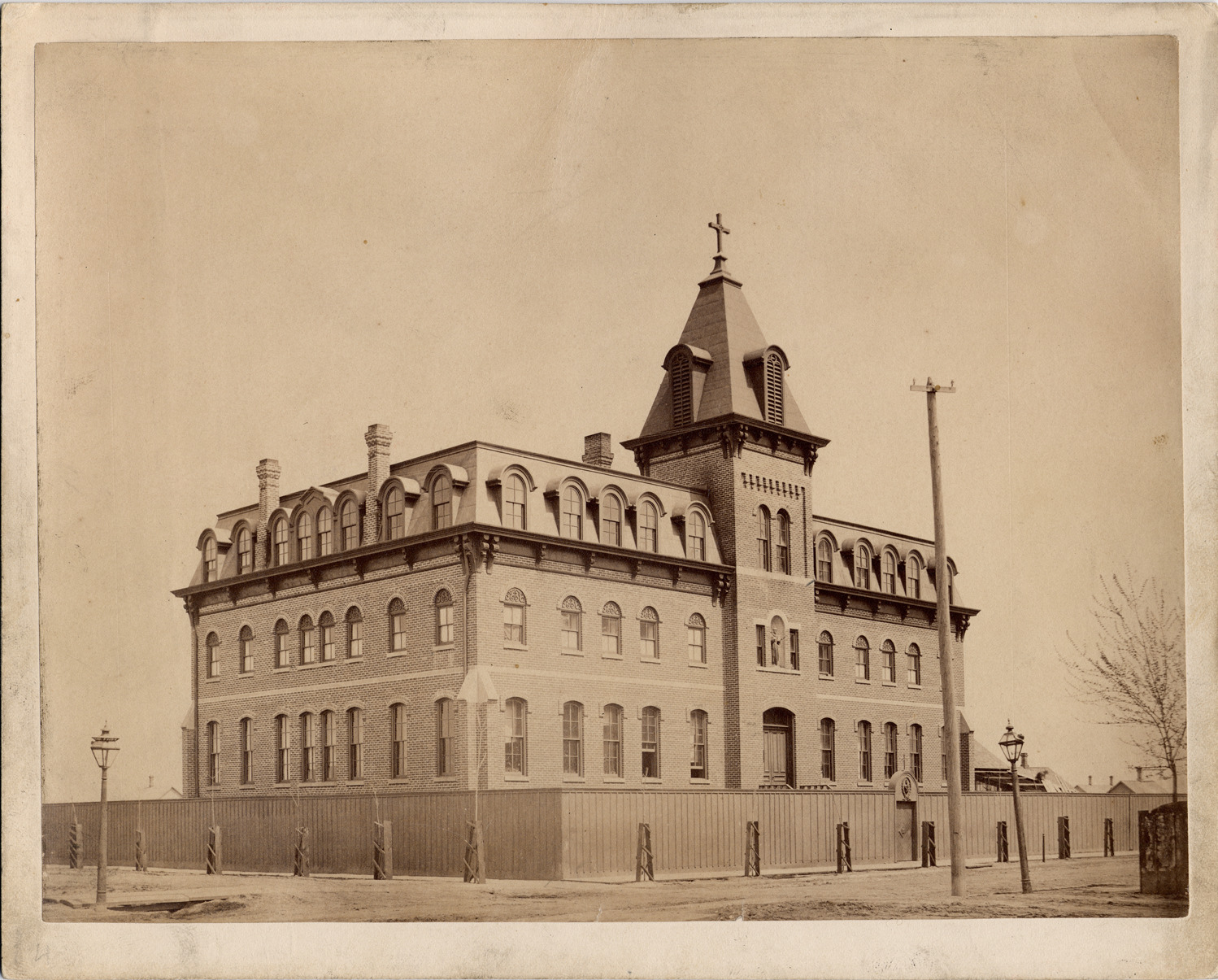 Favorite this☆ St. Albert's Convent Description: St. Albert's Convent on St. Aubin Ave. Three-story brick building, surrounded by wood fence, with cross at top of tower above entranceway. Statue of saint above doorway. Details Resource ID: DPA2123 Subject: Convents--Michigan--Detroit Photographic prints Date Issued: Unknown year Format: 1 photographic print mounted on mat board ; image 7.25 x 9.25 in. Member of: Burton Historical Collection Filing Location: D/Schools-St. Albert's Rights: Physical rights are retained by DPL. Copyright is retained in accordance with U.S. copyright laws.