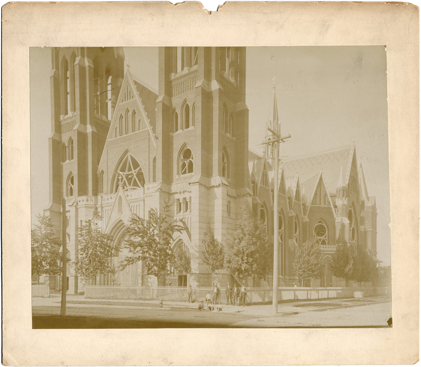 Favorite this☆ Sweetest Heart of Mary Church Description: Large brick church with two towers, behind picket fence and viewed diagonally across intersection. Group of men and boys by corner. Handwritten on mat back: "N.e. corner of Canfield and Russell, built in 1892." Details Resource ID: DPA2151 Subject: Sweetest Heart of Mary Church (Detroit, Mich.) Catholic church buildings--Michigan--Detroit Albumen prints Photographic prints Date Issued: Unknown year Format: 1 photographic print mounted on mat board ; image 7.5 x 9.5 in. Member of: Burton Historical Collection Filing Location: D/Churches-Roman Catholic-Sweetest Heart of Mary Rights: Physical rights are retained by DPL. Copyright is retained in accordance with U.S. copyright laws.