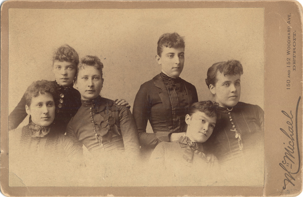 Favorite this☆ Students of Detroit Business University Description: Six young women posed against plain background. Printed on card front: "McMichael, 150 and 152 Woodward Ave., Detroit." Handwritten on card back: "c.1890." 1890 Detroit City Directory lists photographer Alfred G. McMichael at Woodward address. Details Resource ID: DPA2170 Creator: McMichael, Alfred G. Subject: Business students--Michigan--Detroit Women college students--Michigan--Detroit Portraits, Group--Michigan--Detroit Photographers--Michigan--Detroit Cabinet photographs Albumen prints Photographic prints Date Issued: 1890 (year approximate) Format: 1 cabinet card ; image 4 x 5.5 in. Member of: Burton Historical Collection Filing Location: D/Colleges & universities-Detroit Business University Rights: Physical rights are retained by DPL. Copyright is retained in accordance with U.S. copyright laws.
