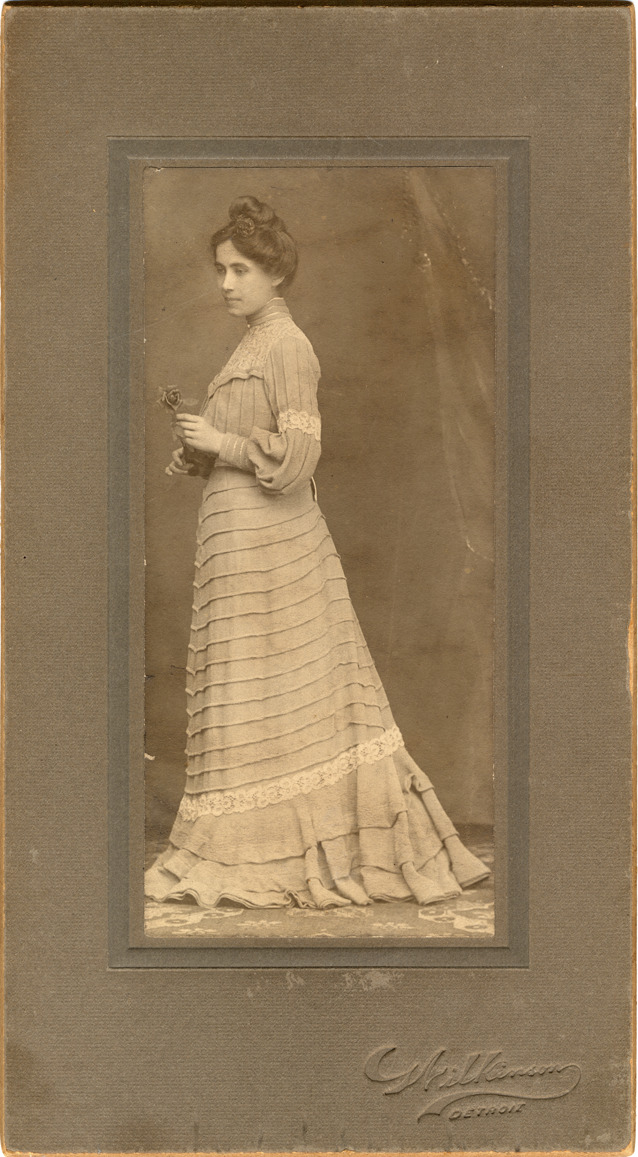 Favorite this☆ Portrait of unidentified woman Description: Studio full body portrait of unidentified young woman in profile, holding rose, wearing ruffled Victorian dress with lace accents. Stamped on front: "Wilkinson, Detroit." Details Resource ID: DPA2274 Creator: Wilkinson, Edwin H. Subject: Portrait photography--Michigan--Detroit Women--Michigan--Detroit Photographers--Michigan--Detroit Photographic prints Date Issued: Unknown year Format: 1 photographic print mounted on mat board ; image 5.25 x 2.5 in. Member of: Burton Historical Collection Filing Location: D/Costumes-Women Rights: Physical rights are retained by DPL. Copyright is retained in accordance with U.S. copyright laws.