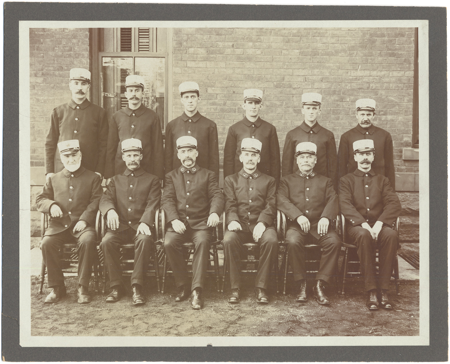Favorite this☆ Group portrait of Detroit firefighters Description: Group portrait of uniformed company of Detroit firefighters, wearing white hats with short brims. Handwritten on back: "Detroit Fire Company." Details Resource ID: DPA2329 Subject: Fire fighters--Michigan--Detroit Portraits, Group Photographic prints Date Issued: Unknown year Format: 1 photographic print mounted on mat board ; image 7.5 x 9.5 in. Member of: Burton Historical Collection Filing Location: D/Fire Dept-Companies Rights: Physical rights are retained by DPL. Copyright is retained in accordance with U.S. copyright laws.