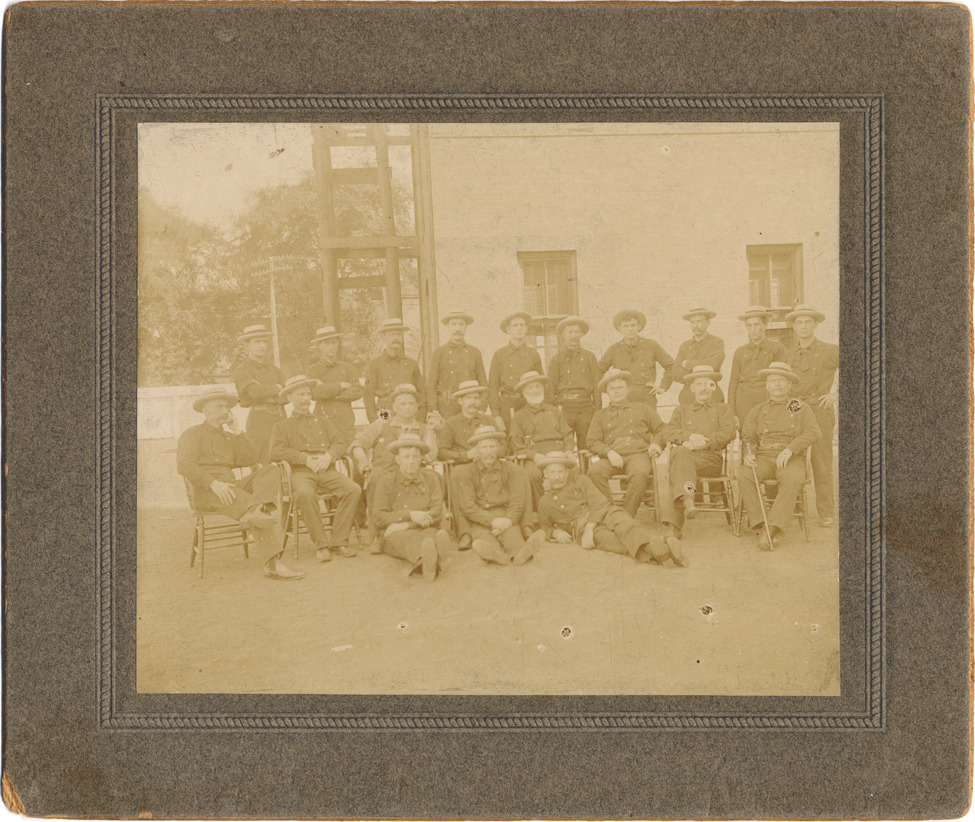 Favorite this☆ Group portrait of Detroit firefighters Description: Group portrait of uniformed company of Detroit firefighters, wearing double-breasted coats and wide-brimmed hats. Handwritten on back: "Members of Eng. Co. No. 12 and Hook & Ladder Co. No. 9, July 4th, 1903." Details Resource ID: DPA2330 Subject: Fire fighters--Michigan--Detroit Portraits, Group Photographic prints Date Issued: 1903-07-04 Format: 1 photographic print mounted on mat board ; image 3.75 x 4.25 in. Member of: Burton Historical Collection Filing Location: D/Fire Dept-Companies Rights: Physical rights are retained by DPL. Copyright is retained in accordance with U.S. copyright laws.