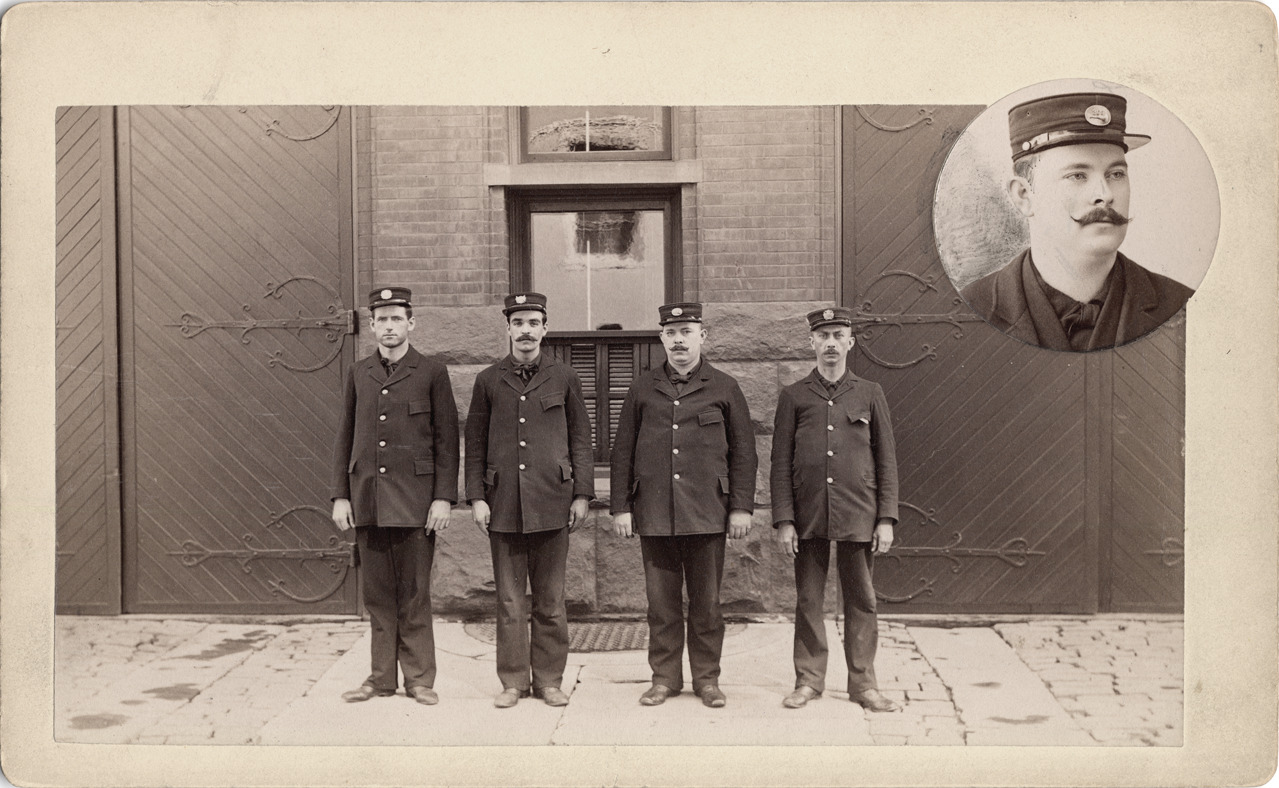 Favorite this☆ Chemical Company 1 Description: Group portrait of uniformed company of Detroit firefighters, Chemical Company 1. Inset photo of Captain M.H. Donaghue. Handwritten on back: "Chemical Co. no. 1, Lt. M.H. Donaghue." Details Resource ID: DPA2346 Subject: Fire fighters--Michigan--Detroit Portraits, Group Photographic prints Date Issued: Unknown year Format: 1 photographic print mounted on mat board ; image 4.5 x 7.75 in. Member of: Burton Historical Collection Filing Location: D/Fire Dept-Hook and Ladder Co. #1 Rights: Physical rights are retained by DPL. Copyright is retained in accordance with U.S. copyright laws.