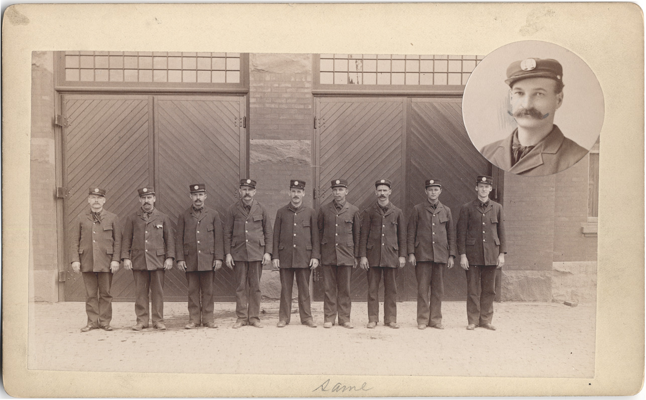 Favorite this☆ Engine Company 12 Description: Group portrait of uniformed company of Detroit firefighters, Engine Company 12. Inset photo of Captain DeLancey Haven. Station located at 16th and Grand River. Handwritten on back: "Engine Co. no. 12, 16th & Grand River, Capt. DeLancey Haven." Details Resource ID: DPA2365 Subject: Fire fighters--Michigan--Detroit Portraits, Group Photographic prints Date Issued: Unknown year Format: 1 photographic print mounted on mat board ; image 4.5 x 7.75 in. Member of: Burton Historical Collection Filing Location: D/Fire Dept-Engine House #12 Rights: Physical rights are retained by DPL. Copyright is retained in accordance with U.S. copyright laws.