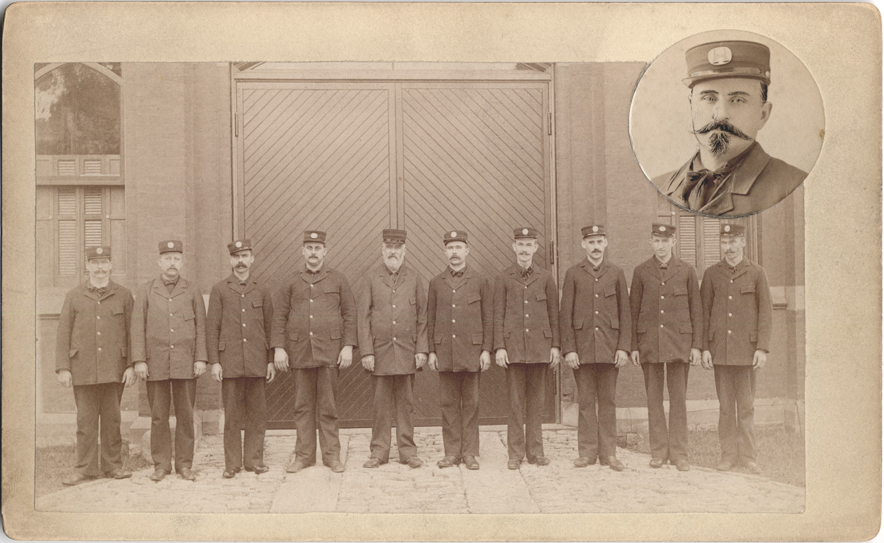 Favorite this☆ Engine Company 3 Description: Group portrait of uniformed company of Detroit firefighters, Engine Company 3. Inset photo of Captain Mathewson. Handwritten on back: "No. 3, Capt. Mathewson." Details Resource ID: DPA2371 Subject: Fire fighters--Michigan--Detroit Portraits, Group Photographic prints Date Issued: Unknown year Format: 1 photographic print mounted on mat board ; image 4.75 x 7.75 in. Member of: Burton Historical Collection Filing Location: D/Fire Dept-Engine House #3 Rights: Physical rights are retained by DPL. Copyright is retained in accordance with U.S. copyright laws.
